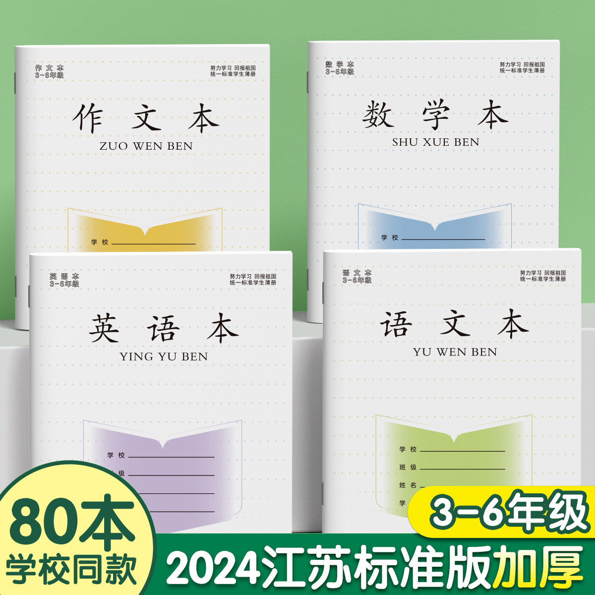📚 江苏统一作业本语文本三到六年级英语本小学生专用作业本作文英语练习本数学加厚四五默写本子批发标准练字簿