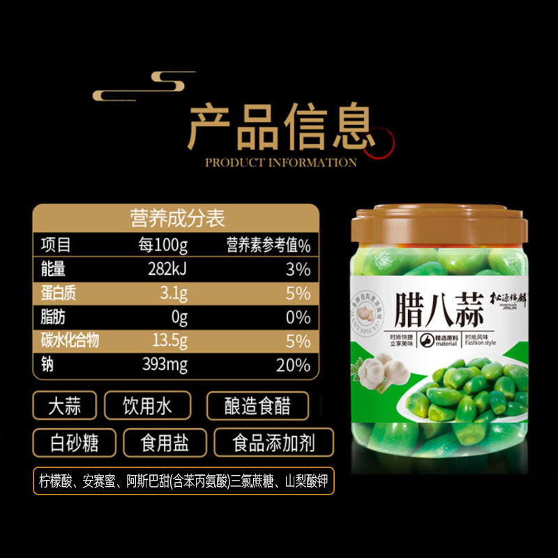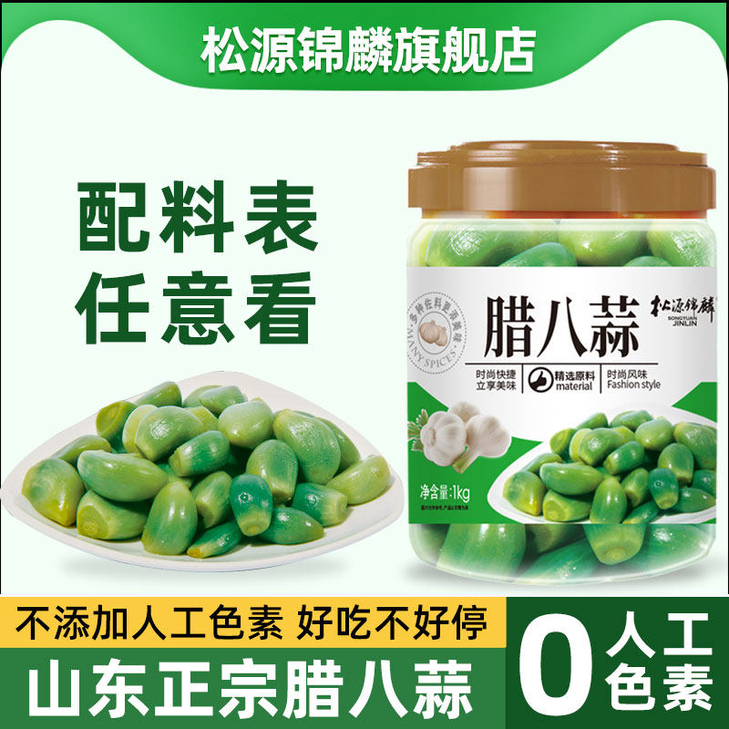 📚 松源锦麟腊八蒜罐装醋泡蒜头腌制翡翠绿蒜米大蒜头甜开胃下饭咸菜
