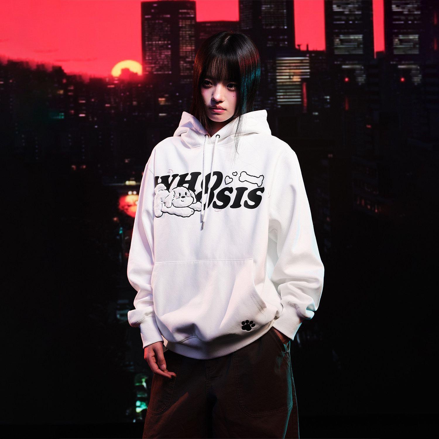 📚 WHOOSIS(不知其名)小猫小狗贴毛帽衫卫衣秋季校园情侣男女国潮