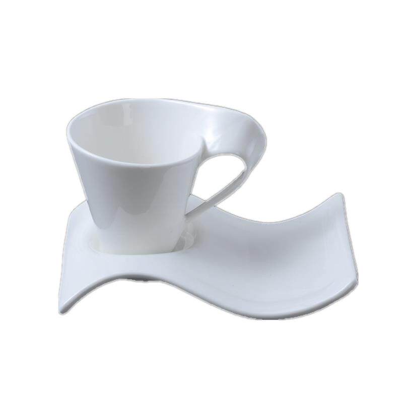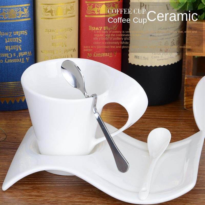 📚 Creative Wavy Espresso Cup Saucer Set Porcelain Milk Breakfa