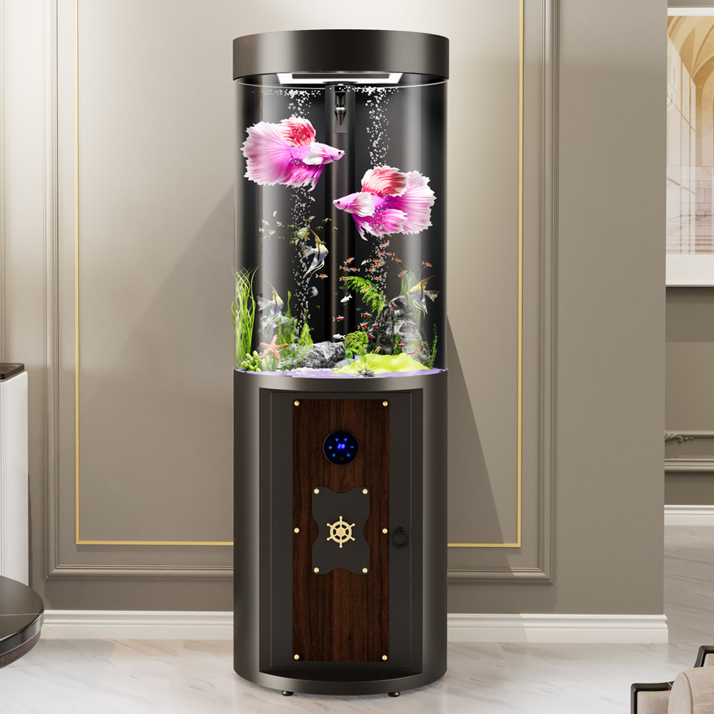 📚 新款懒人网红圆柱体鱼缸智能落地客厅鱼缸中型金鱼缸圆柱体水族箱