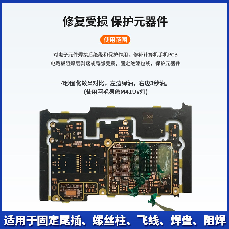 📚 阿毛易修主板飞线3秒速干油手机维修紫外光固化胶UV油 比绿油好用