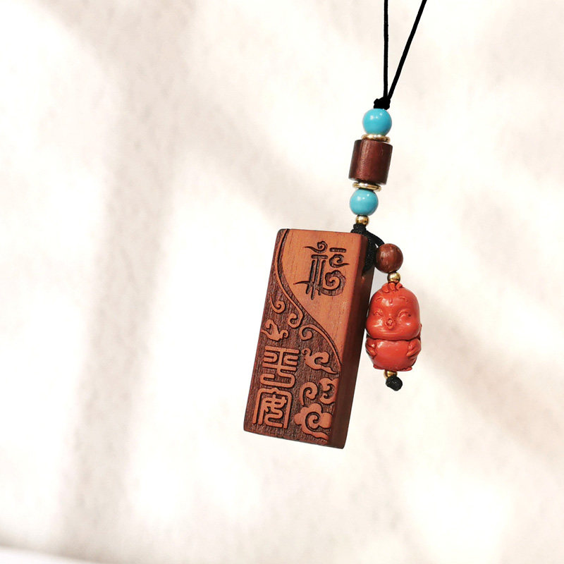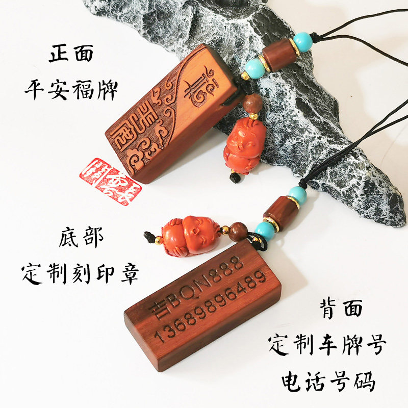 📚 红木平安牌定制印章款汽车钥匙扣挂件饰品手机包包挂件木质男女