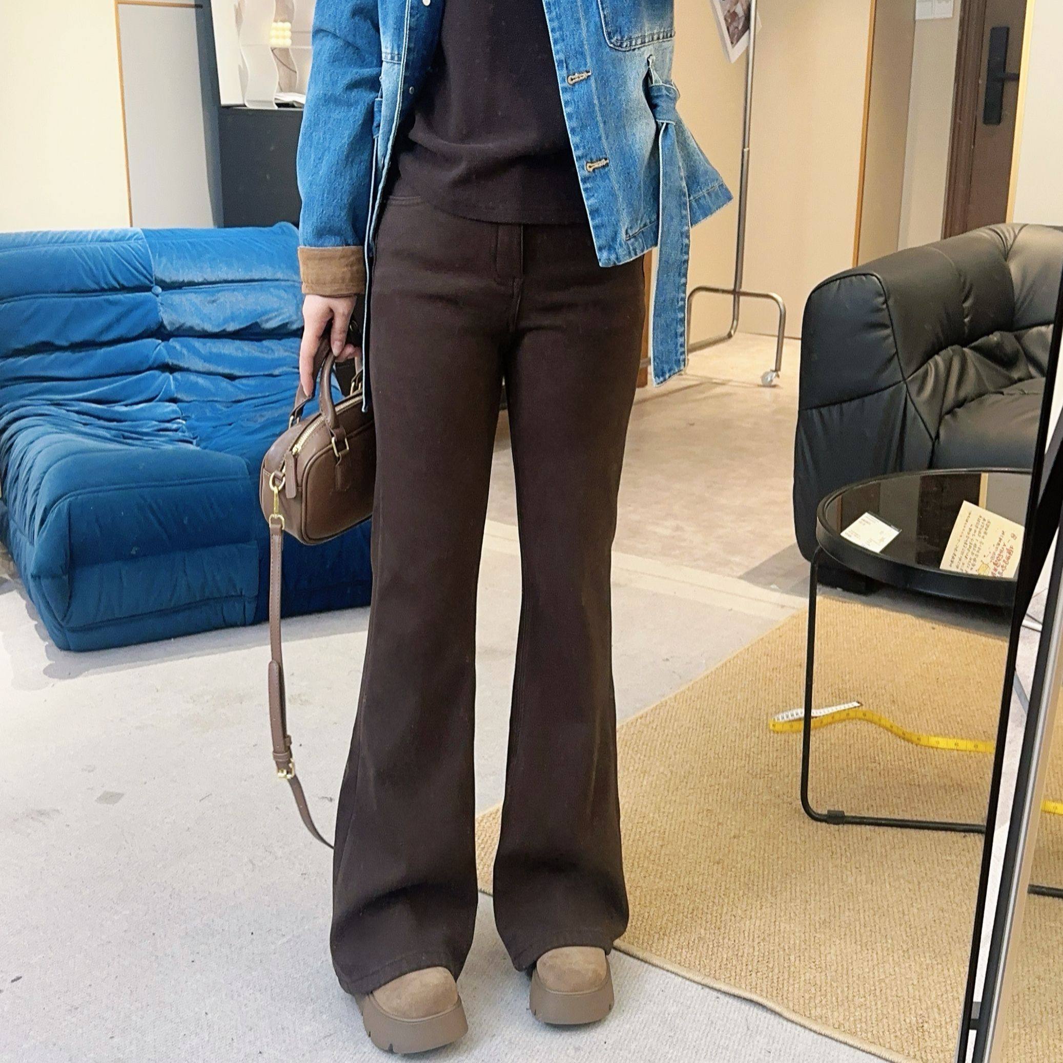 📚 【刺绣微喇】加厚绒显瘦微喇牛仔裤百搭小个子窄版直筒喇叭B25373