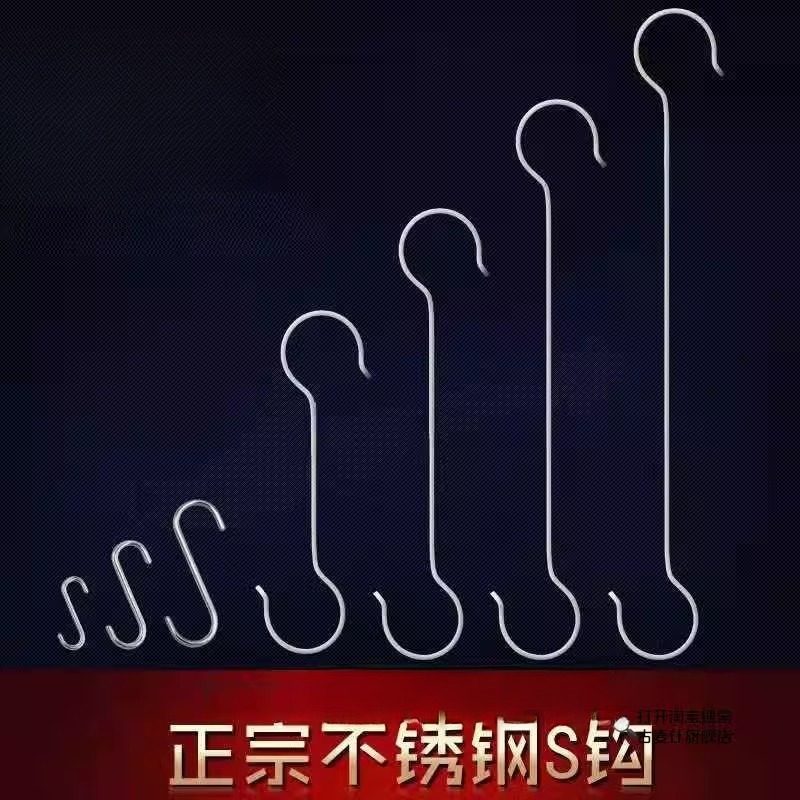 📚 不锈钢加粗不锈钢S钩S型挂钩厨房S弯形服装加长S勾子长杆挂钩钩子