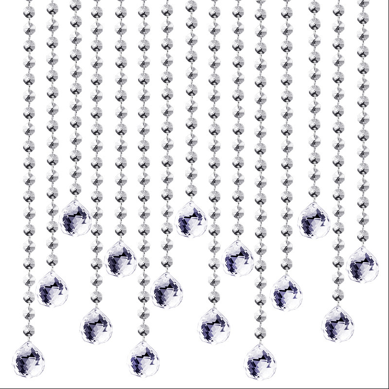 📚 透明水晶八角珠成品珠帘门帘灯饰配件酒店工程装饰婚庆引路帘子