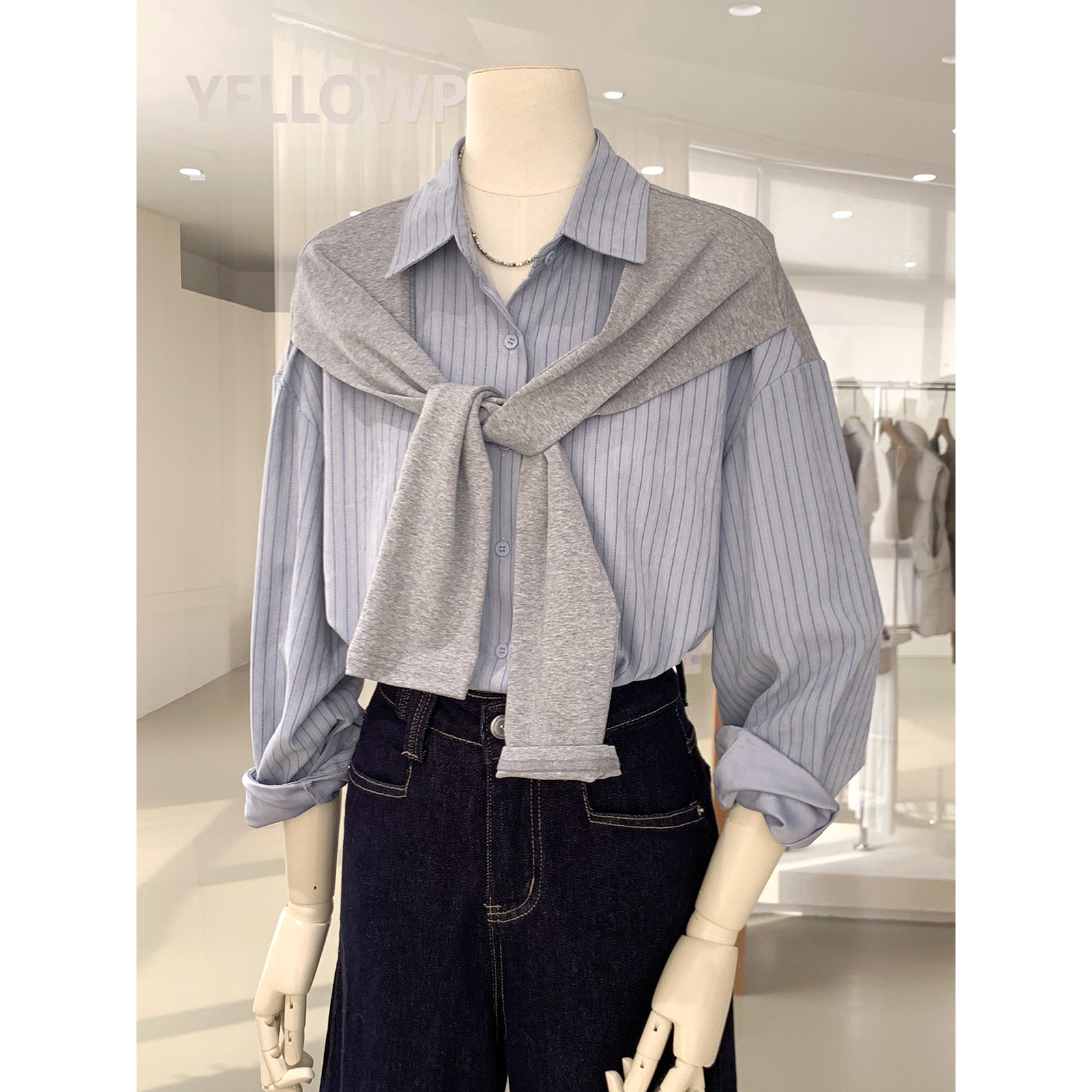 📚 韩系博主感假两件披肩条纹衬衫2026早春新款百搭时髦超好看的上衣