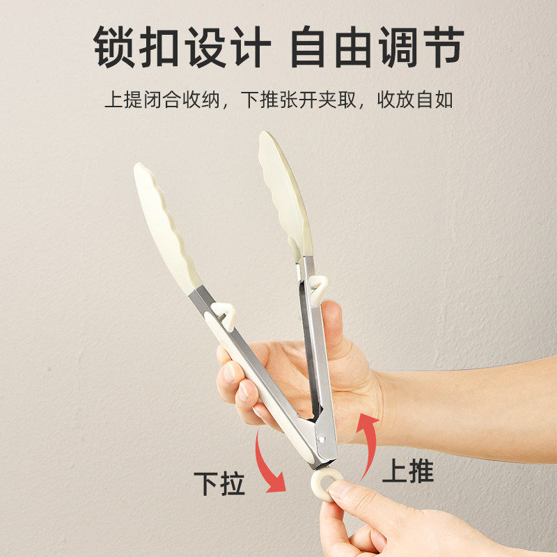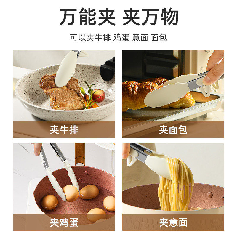 📚 硅胶夹子厨房不锈钢食品夹烤肉工具烧烤煎牛排专用食物夹菜防烫夹