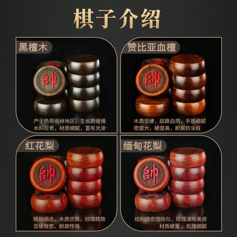 📚 象棋中国象棋带棋盘高端实木红木大号棋子全套送礼折叠便携式象棋
