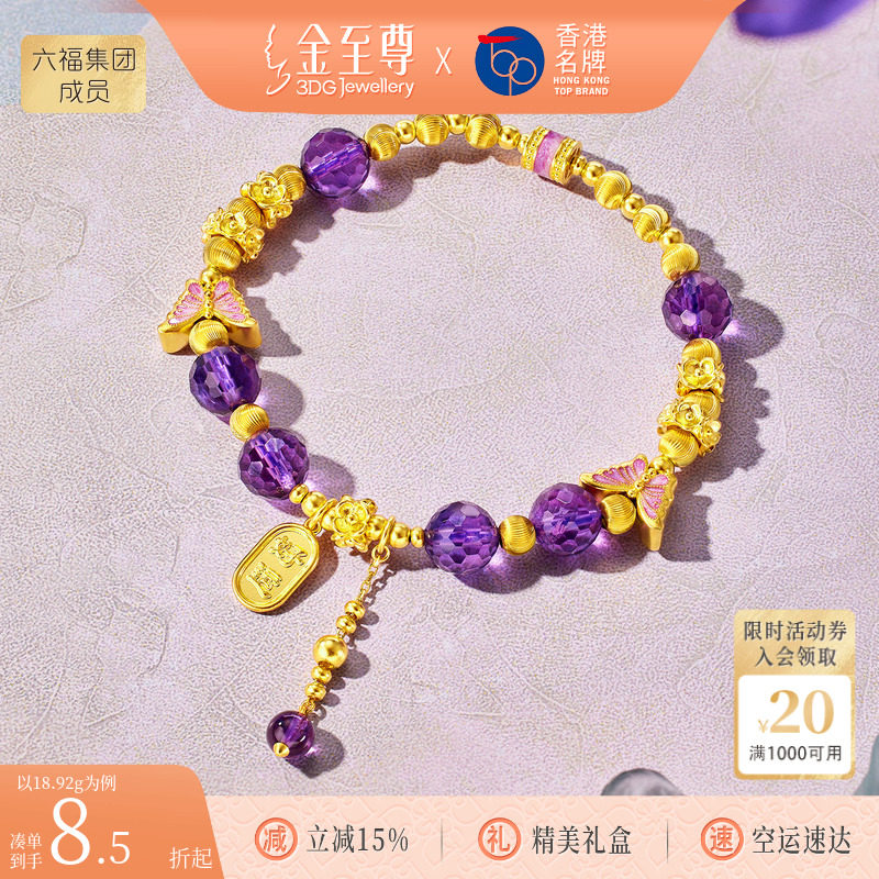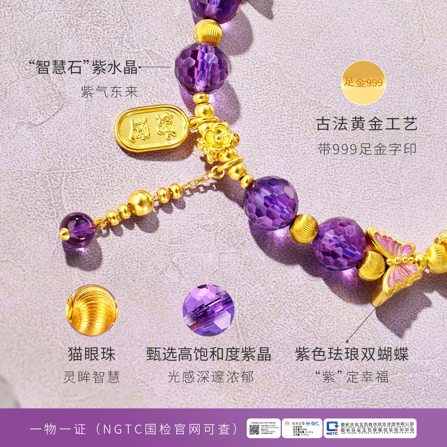 📚 金至尊许凯同款如梦令黄金手链女 足金999蝴蝶紫水晶足金手串轻奢