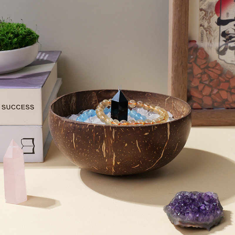 📚 水晶消磁碗天然白水晶碎石宝石手链消磁石收纳净化容器天然椰壳碗