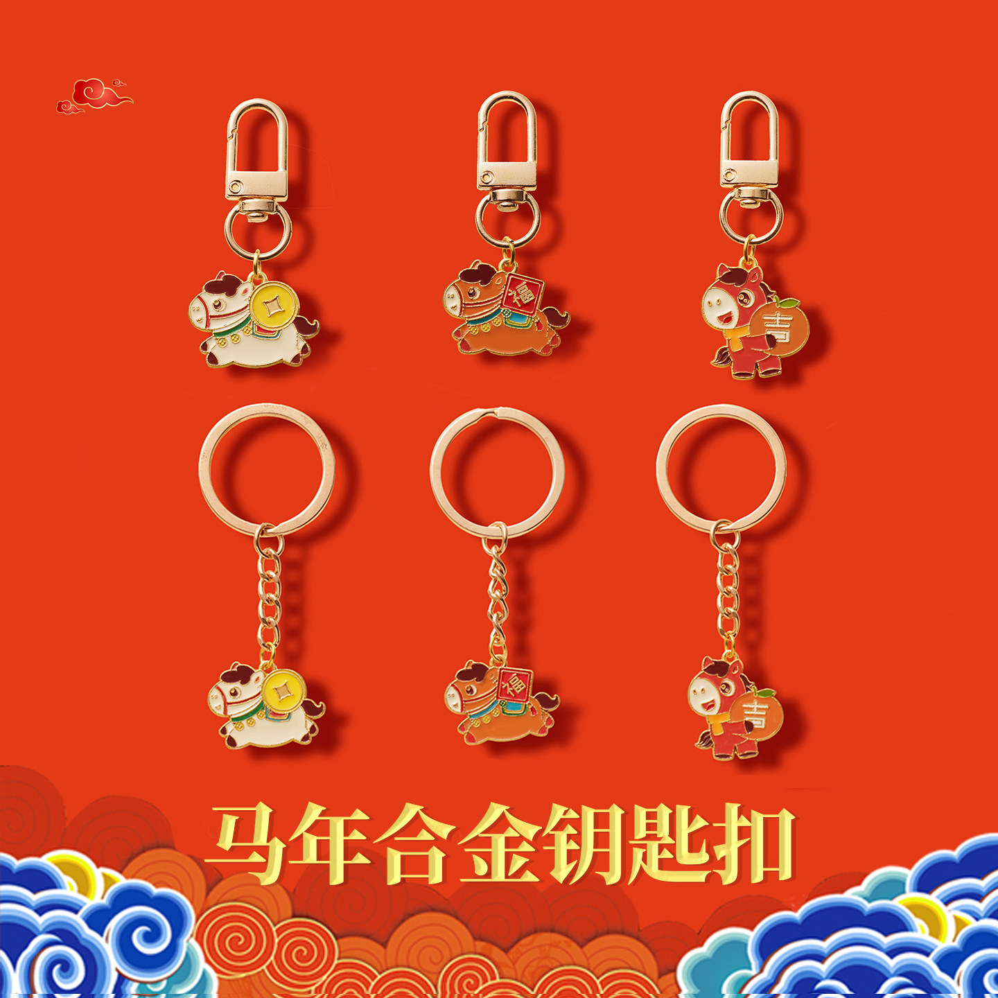 📚 马年钥匙扣合金挂件新年小礼物春节挂饰手机配饰钥匙链钥匙圈礼品
