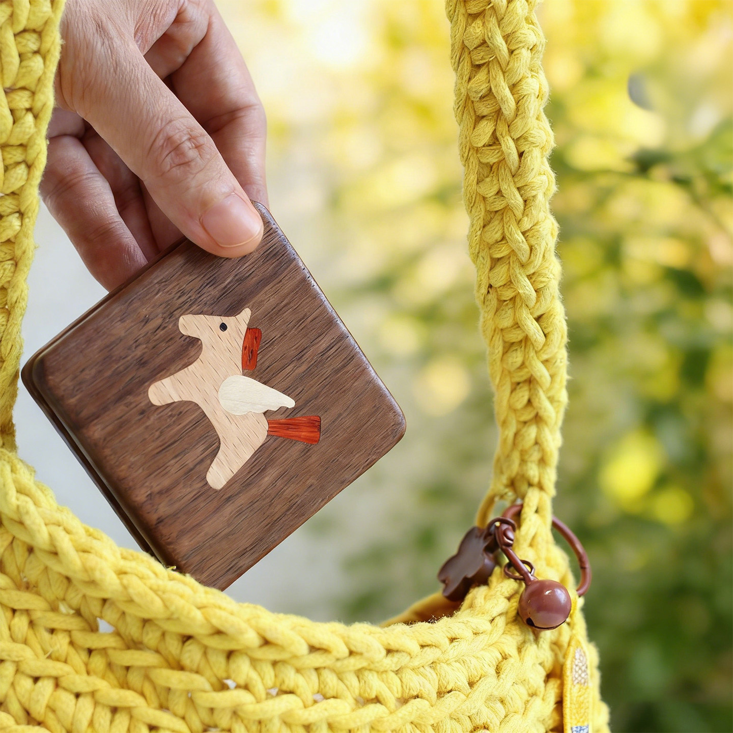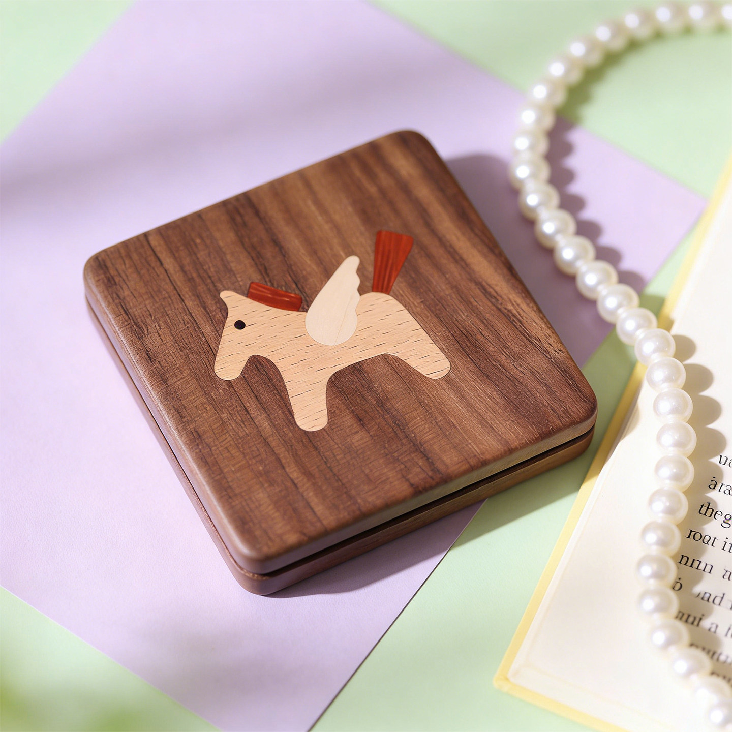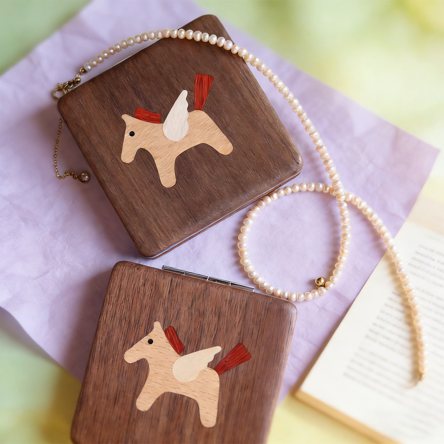 📚 实木化妆镜创意原木复古随身镜可爱精致女生礼物便携补妆镜高级感