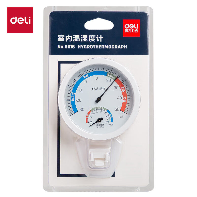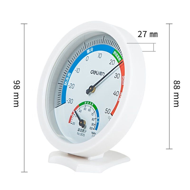 📚 得力室内温湿度计 台挂两用家用 免电池大表盘 办公用品 中号9015