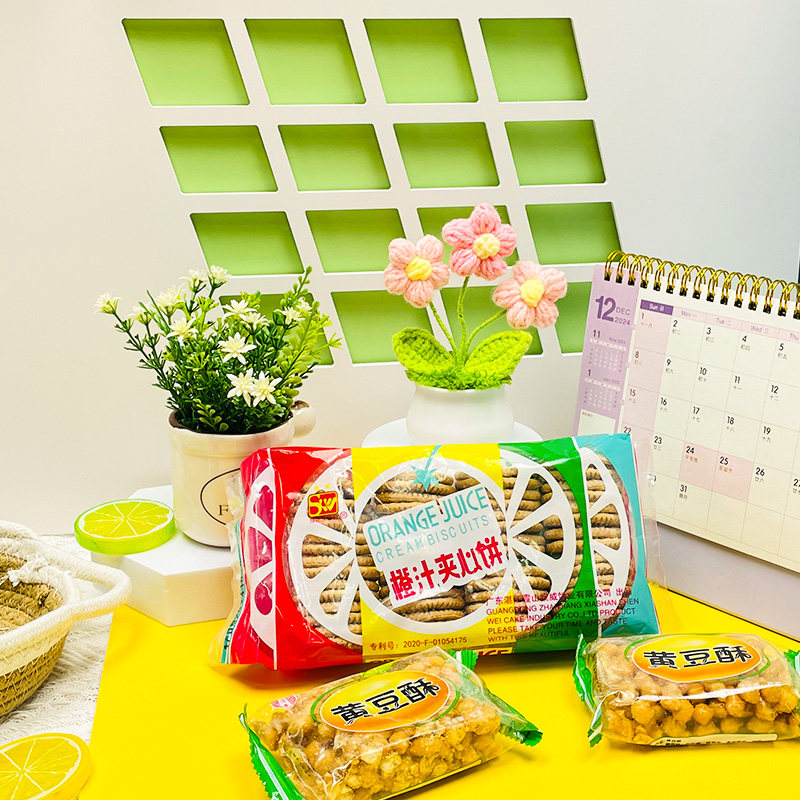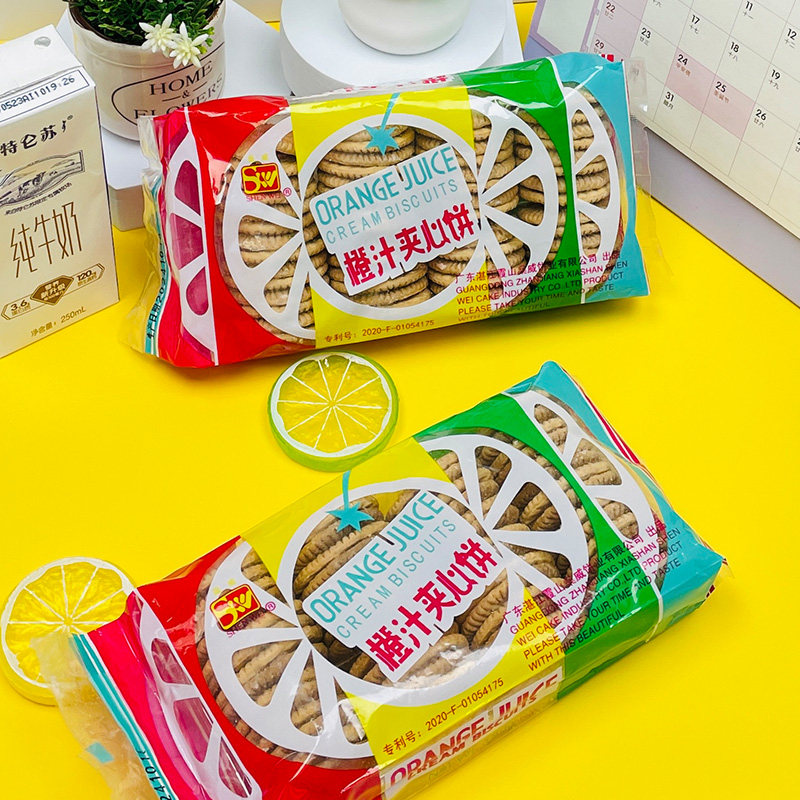 📚 湖北天门特产橙汁夹心饼干老牌子8090后怀旧休闲零食儿时香橙子味