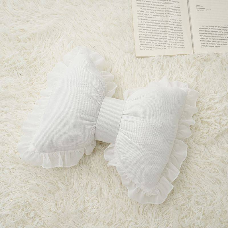 📚 黑白简约沙发抱枕客厅床头靠垫可爱蝴蝶结背靠蕾丝边舒适透气靠枕