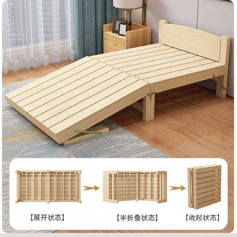 📚 单人折叠床出租房免安装床体无床头实木床家居框架加粗超厚折叠床