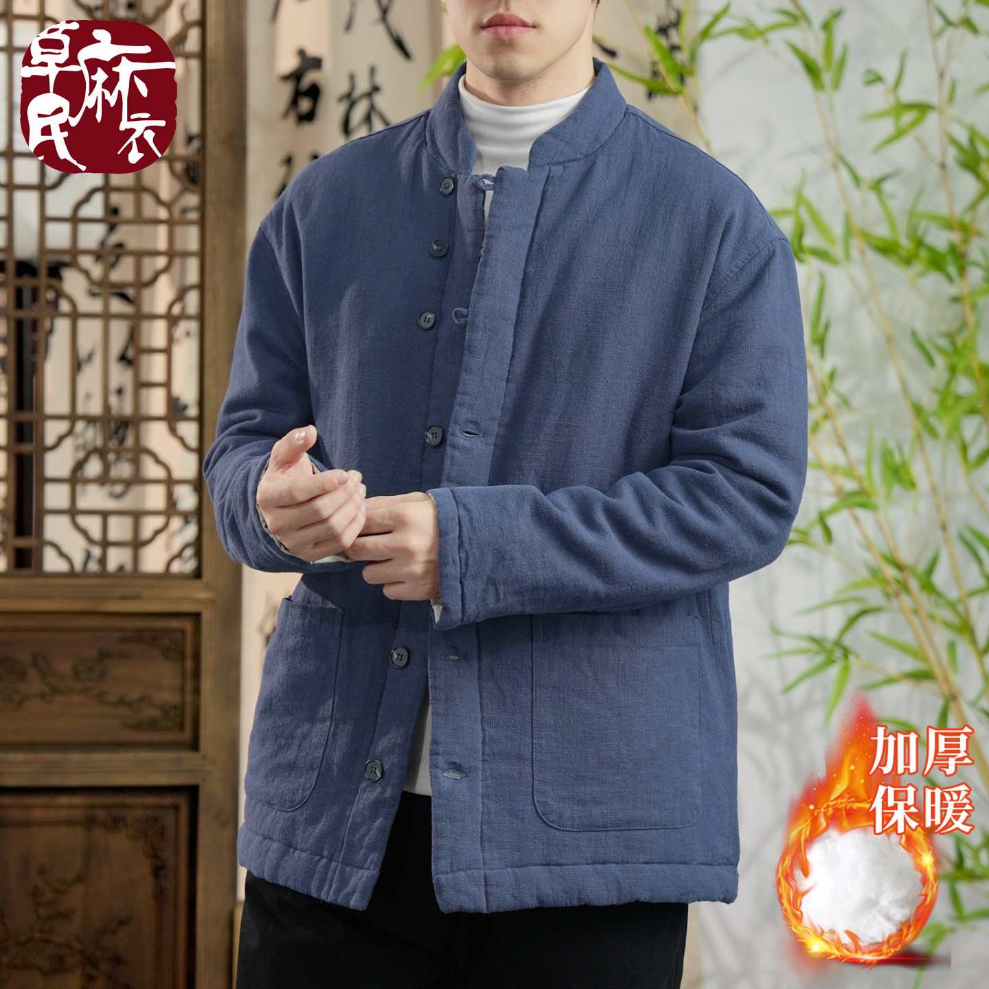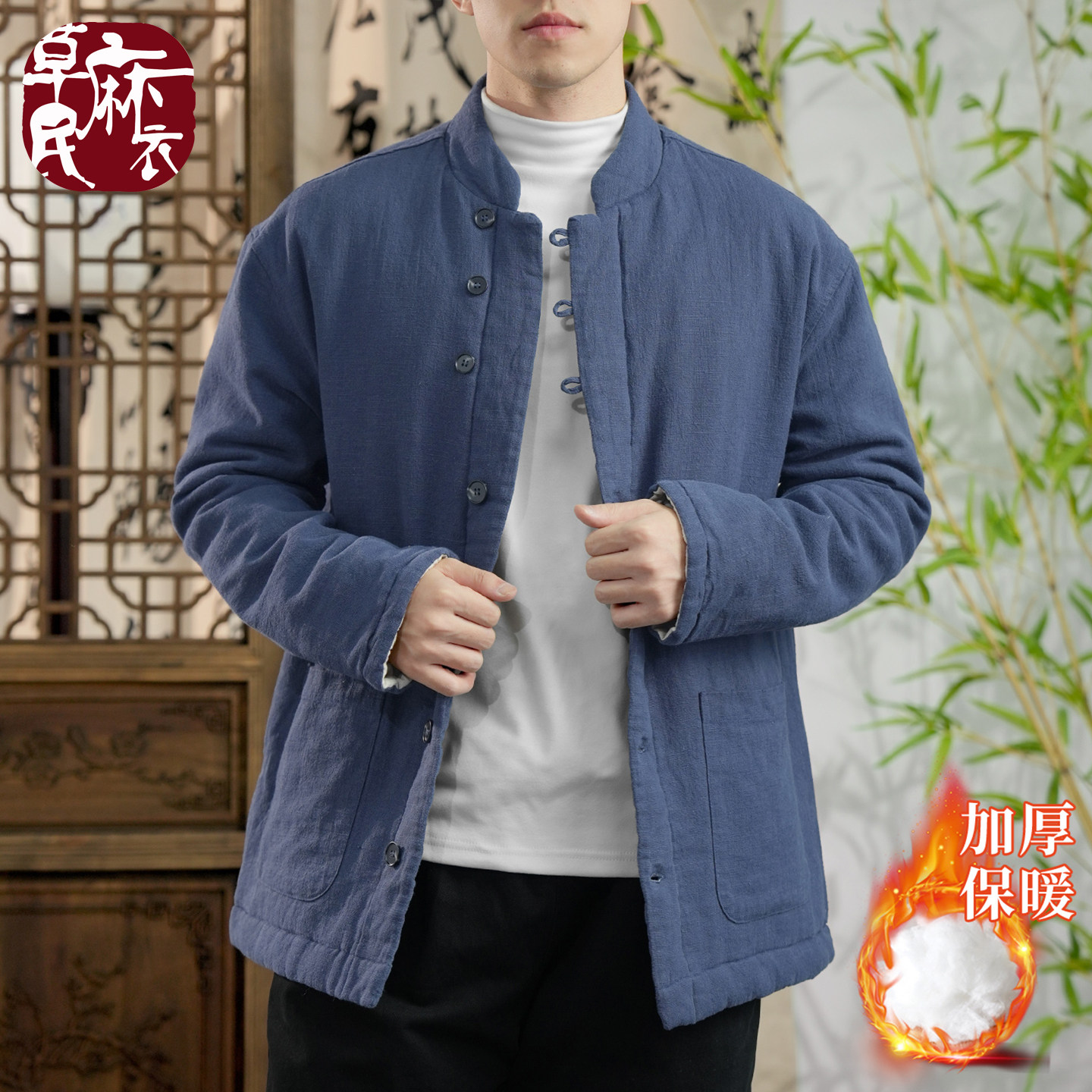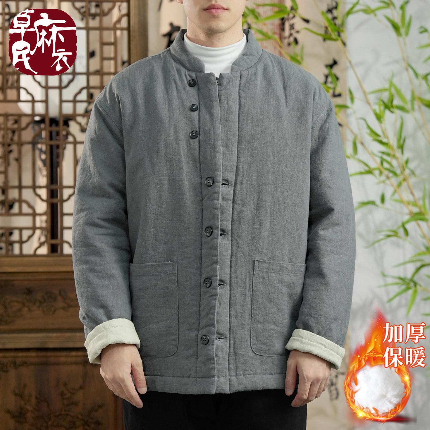 📚 草民麻衣中式立领苎麻防风保暖棉服男加厚棉衣袄国风外套冬季新款