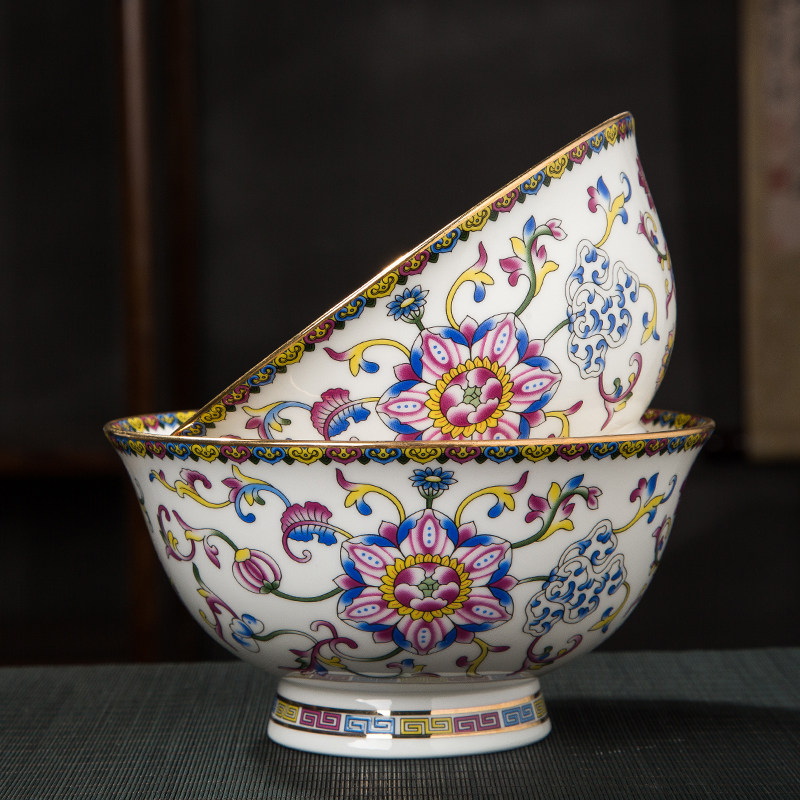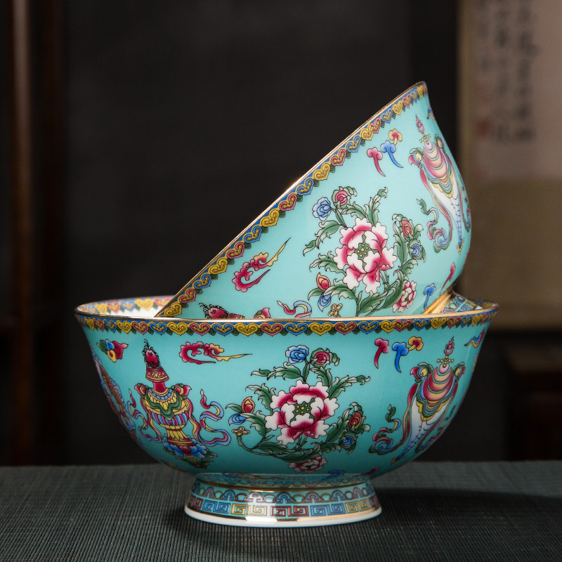 📚 面碗描金珐琅彩瓷碗中式宫廷风景德镇仿古骨瓷碗高脚碗陶瓷礼品碗
