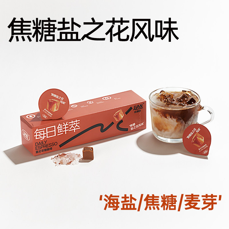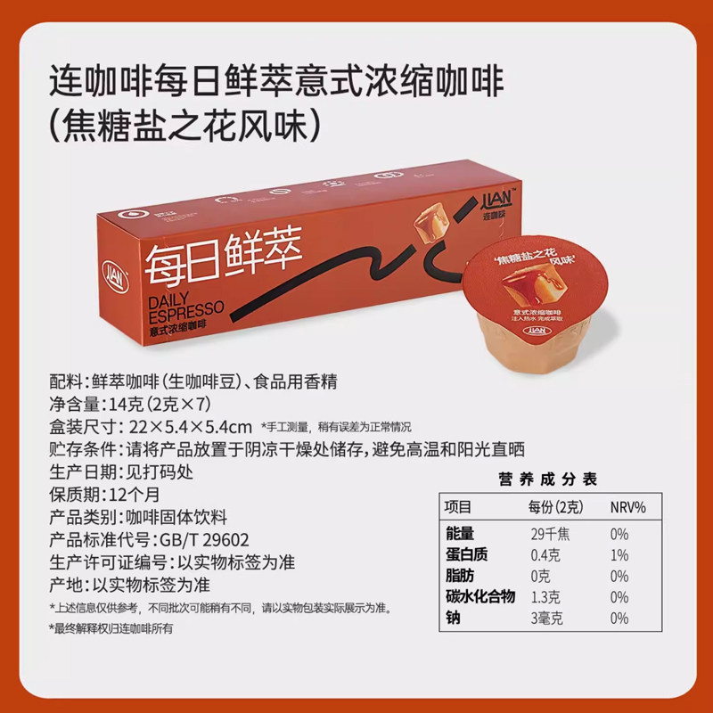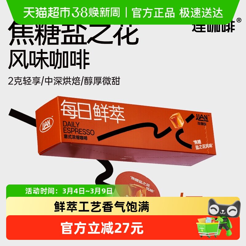 📚 连咖啡每日鲜萃意式浓缩咖啡焦糖风味2g*14颗速溶咖啡粉