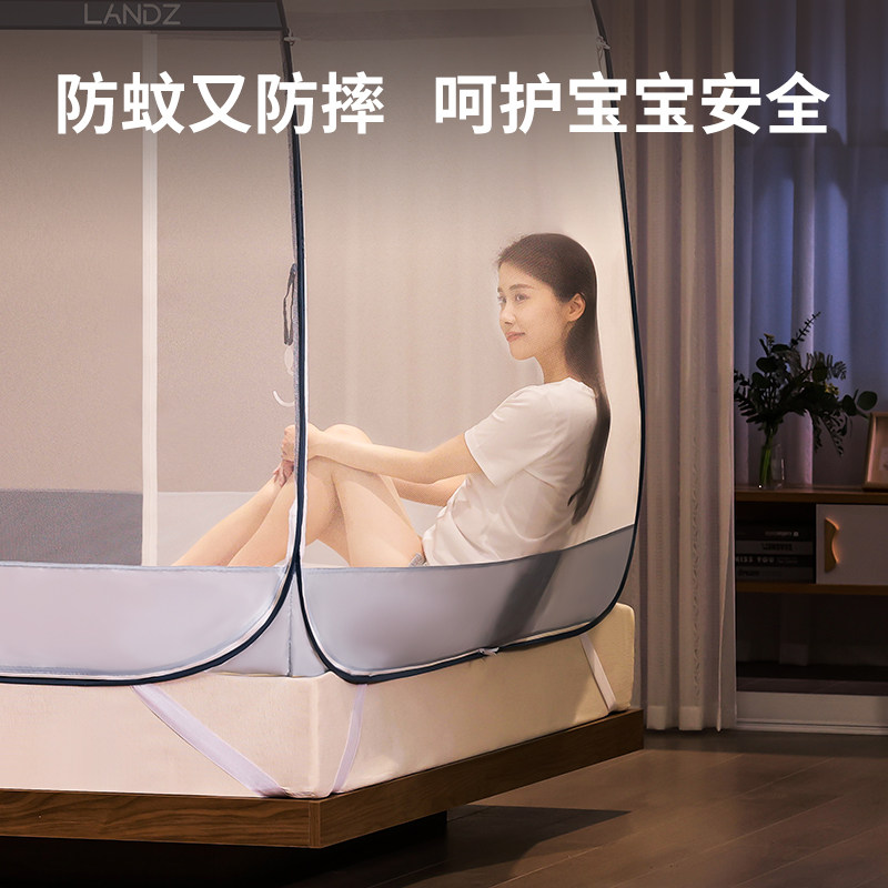 📚 2026新款蒙古包拉链全底蚊帐免安装家用卧室可折叠三开门防摔儿童