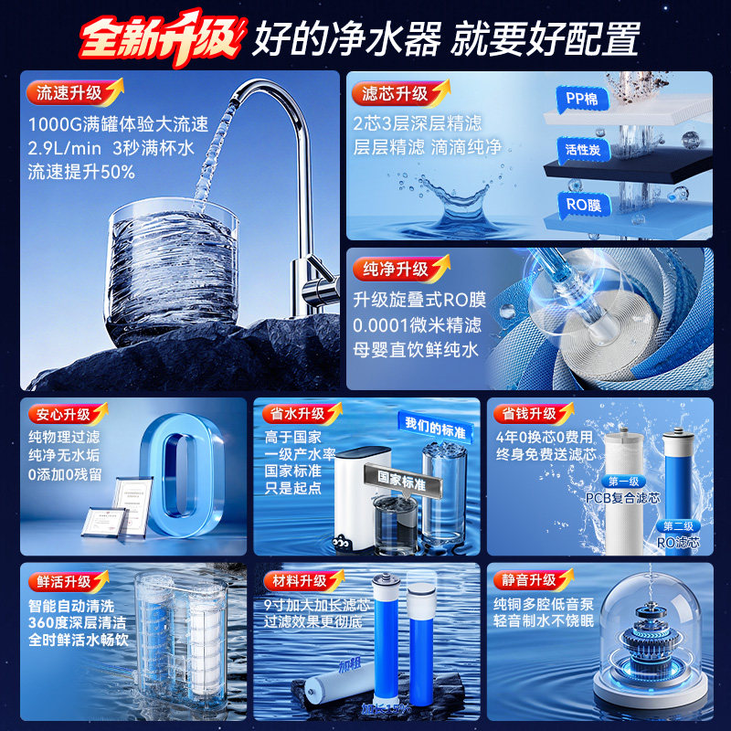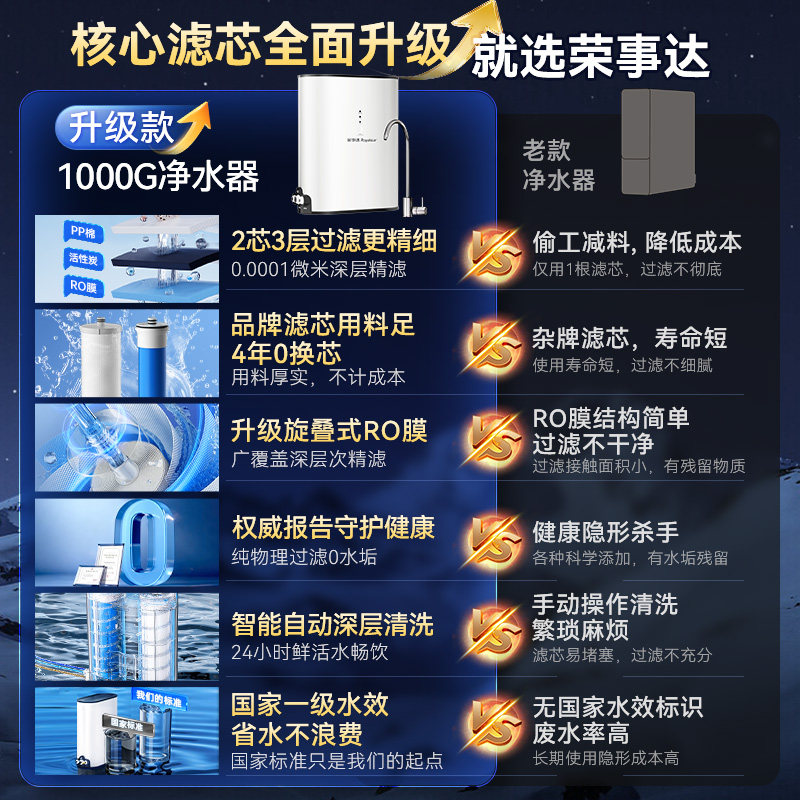 📚 [政府补贴]荣事达净水器RO反渗透直饮家用1000G厨下饮水净化过滤