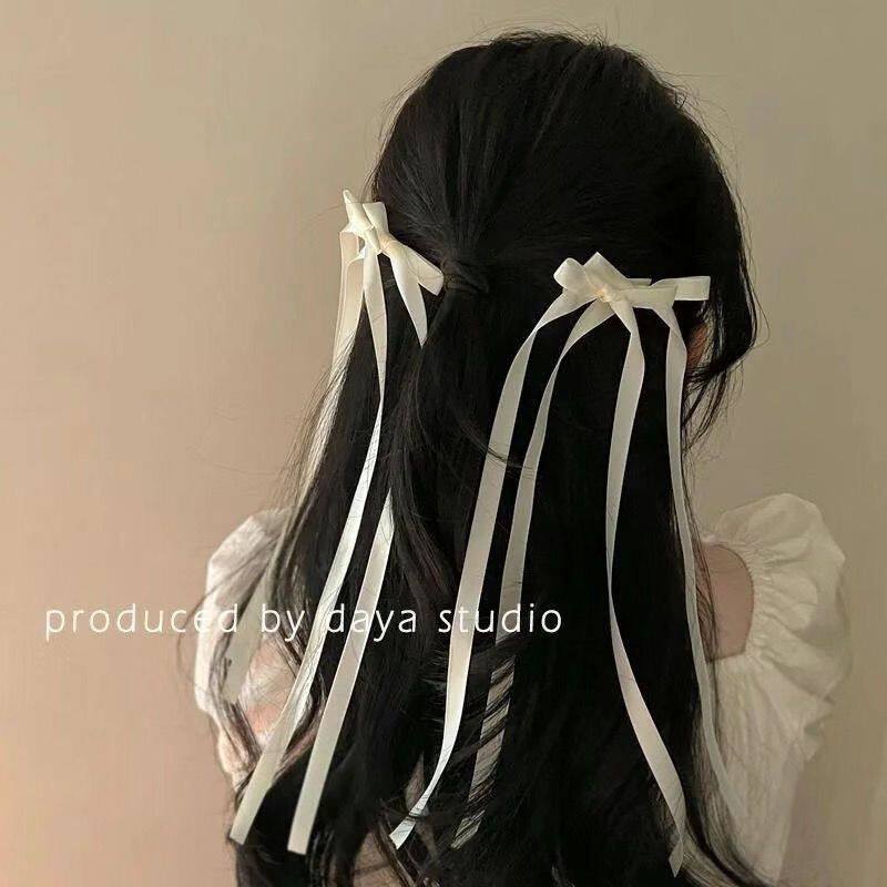 📚 小红书款蝴蝶结可爱丝带绑ins夹女飘带鸭嘴夹百搭少女刘海夹发饰