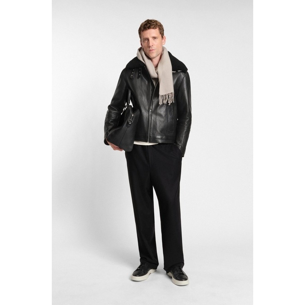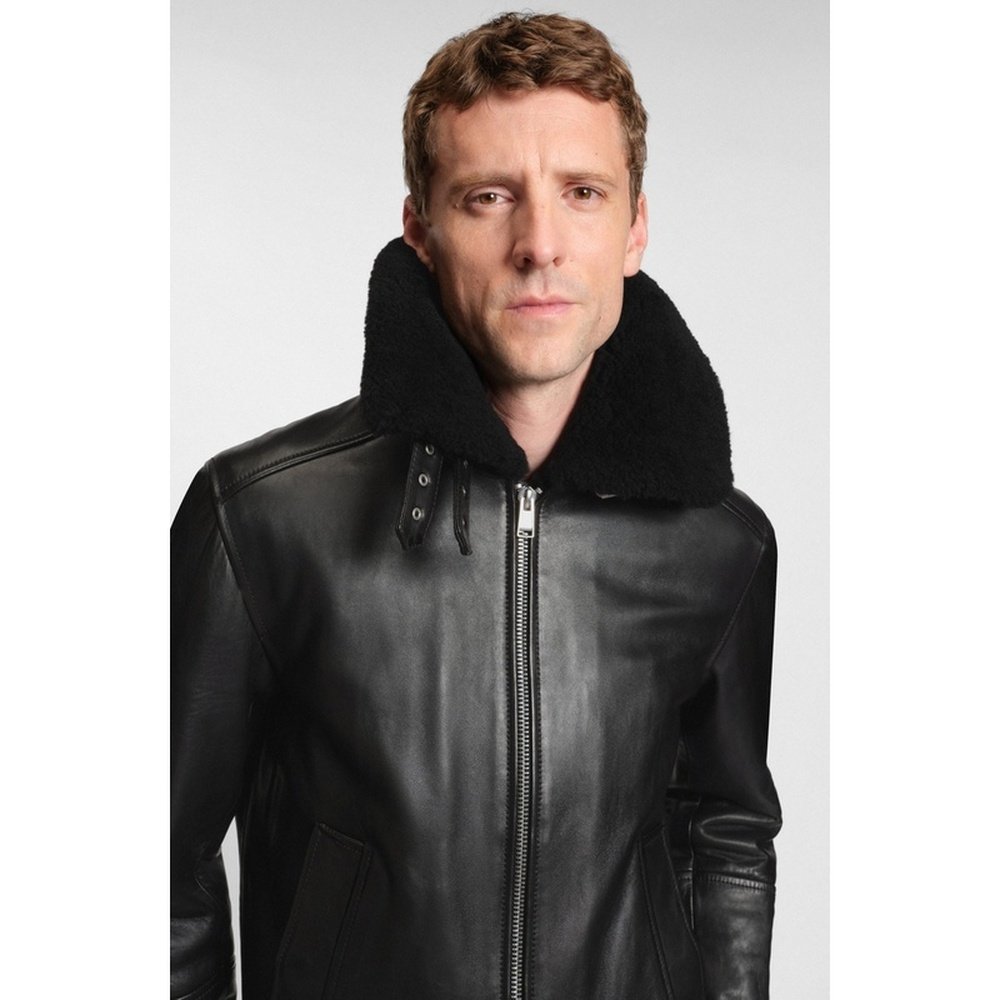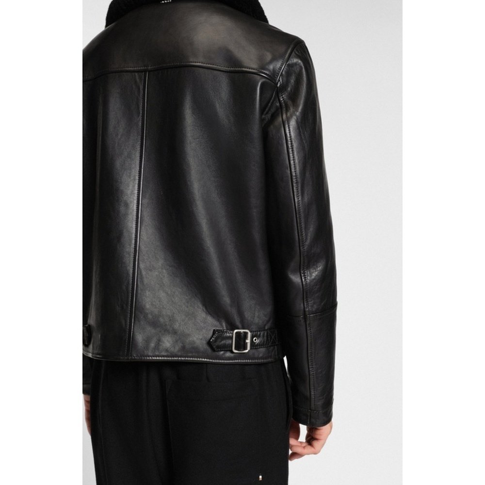 📚 自营欧洲直邮Hugo Boss 男士黑色羔羊皮拉链门襟皮衣