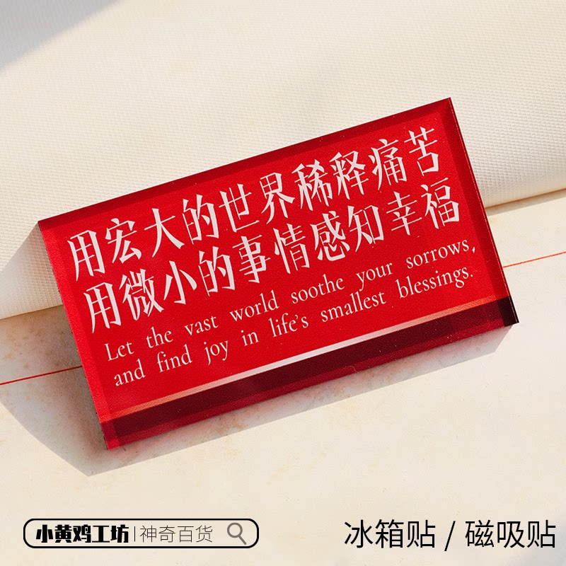 39¥ HU287 SEPp57o7eX7¥ https://m.tb.cn/h.iroiErS 用宏大的世界稀释痛苦用微小的事情感知幸福磁吸贴冰箱贴名言装饰 --------------------- 【原售价】18.8元 【现售价】18.8元。
