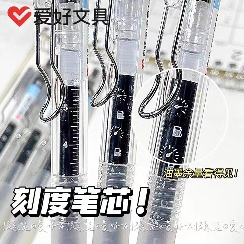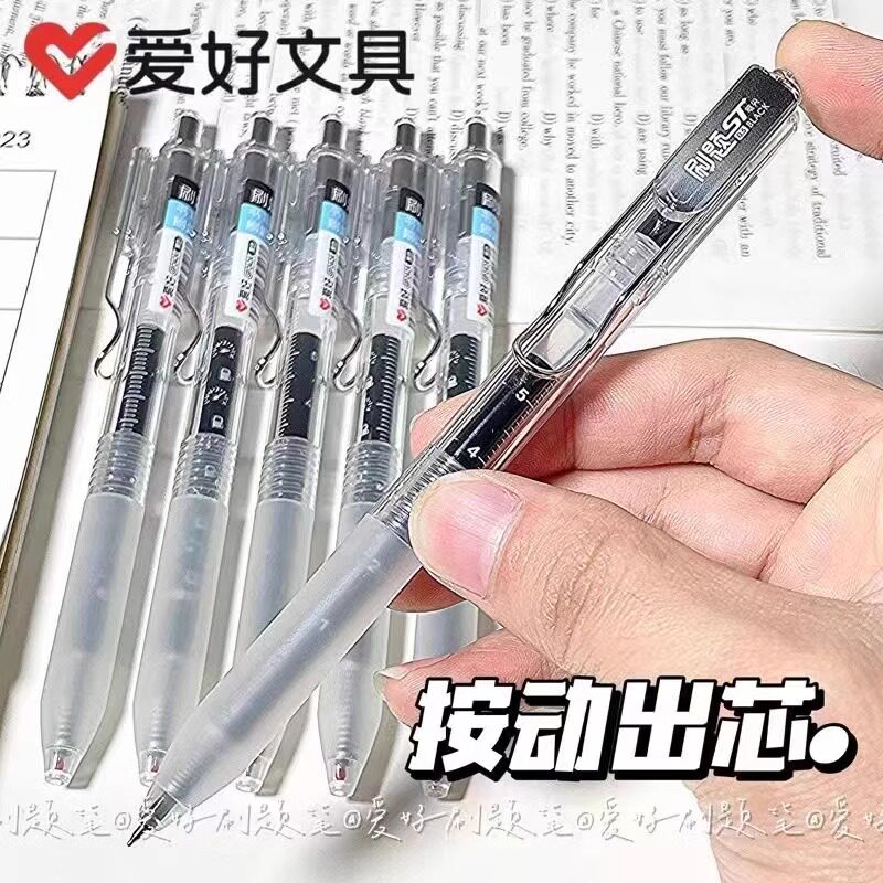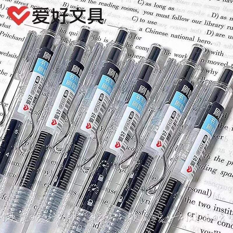 📚 爱好GP2424刷题笔学生写字笔刻度按动笔中性笔st笔头按动中性笔速干顺滑大容量笔芯0.5黑学生考试专用水性笔