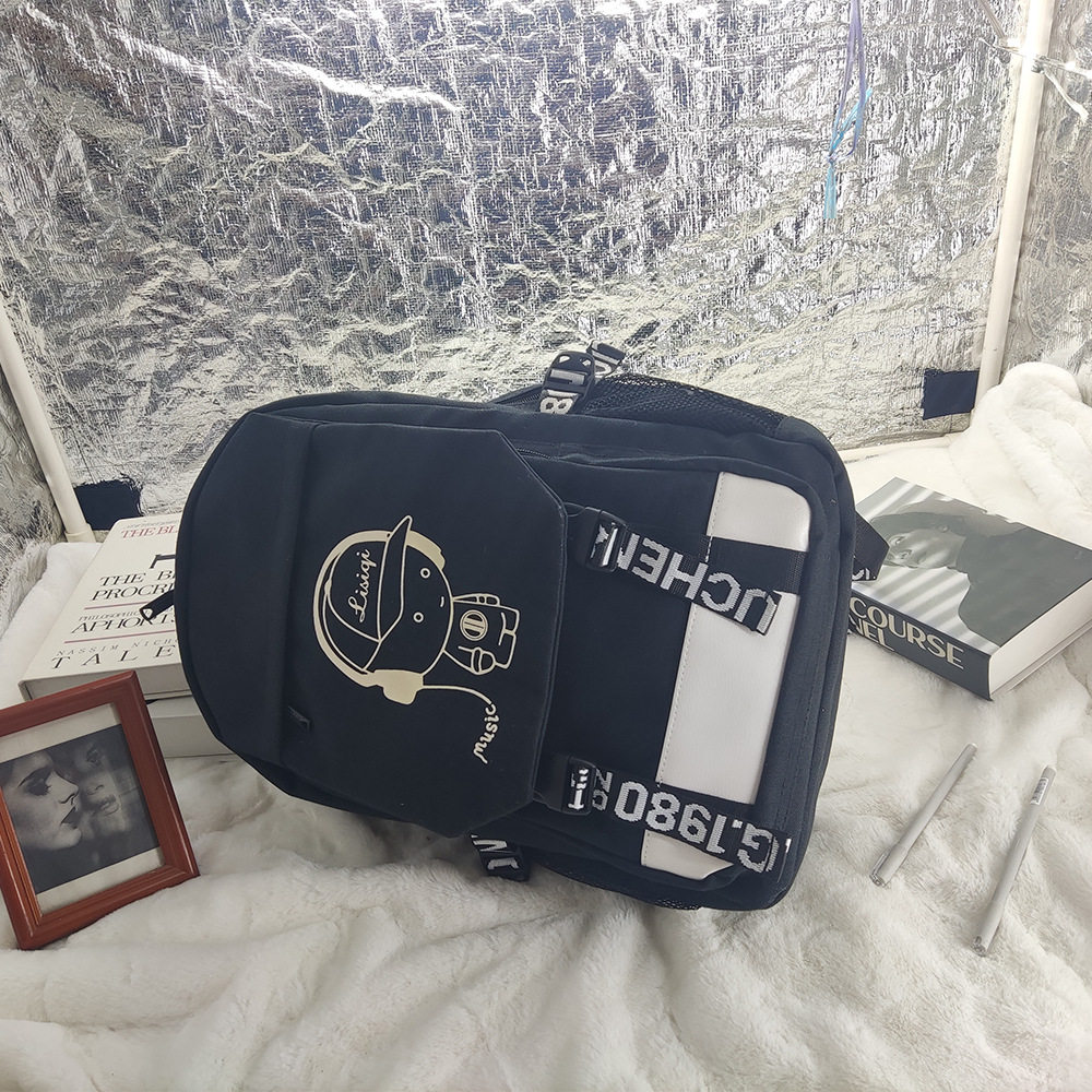 📚 夜光背包男时尚潮流韩版高中学生双肩包初中生书包男童小学生书包