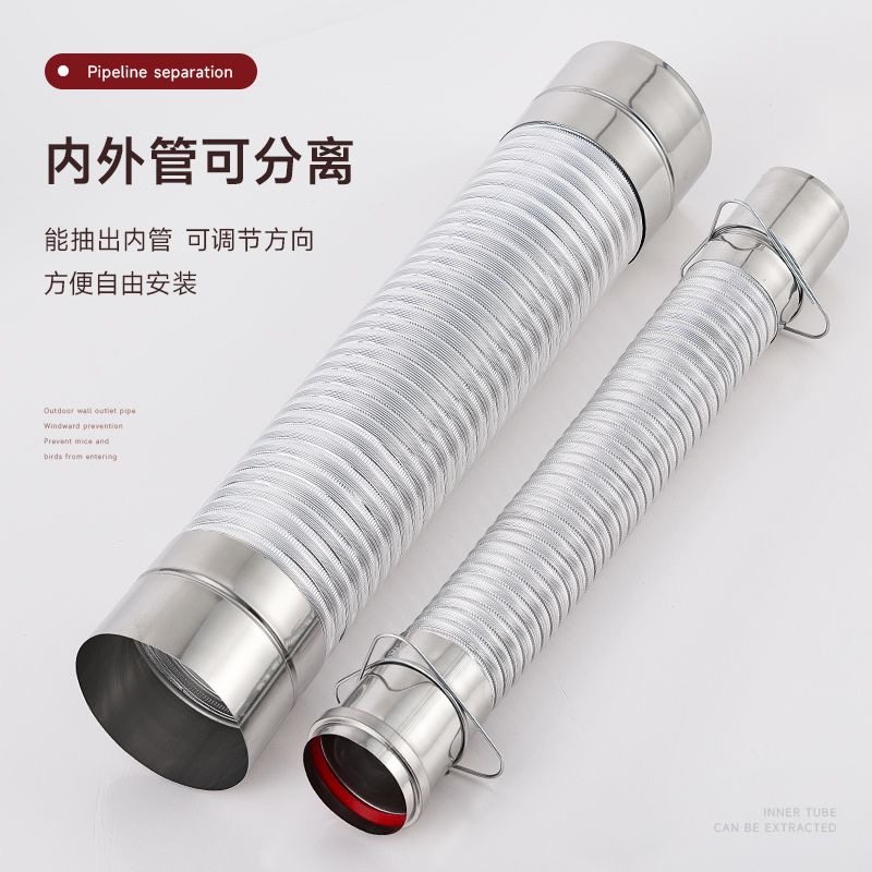 📚 壁挂炉排烟管热水器双层伸缩排气管道100/60铝管加长风管烟筒延长
