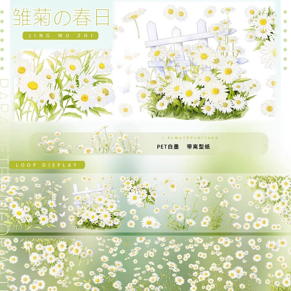 📚 手帐分装胶带雏菊の春日景物志白花栅栏古风PET素材账流麻diy贴纸