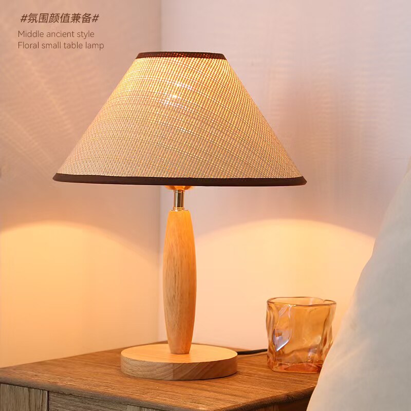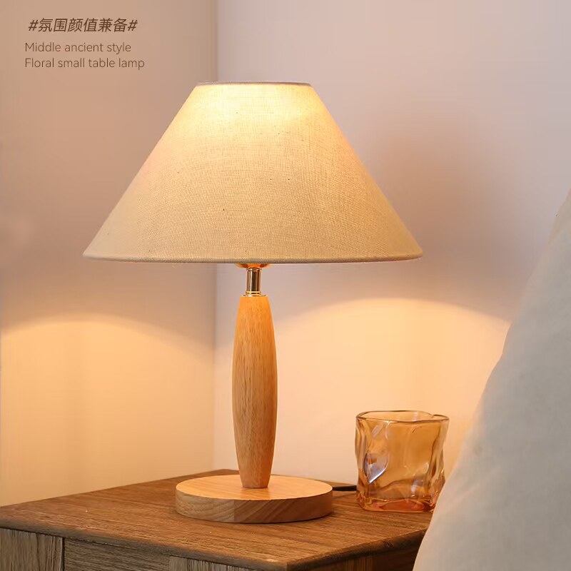 📚 北欧简约实木中古台灯氛围民宿家用卧室床头灯日式原木宋代美学灯