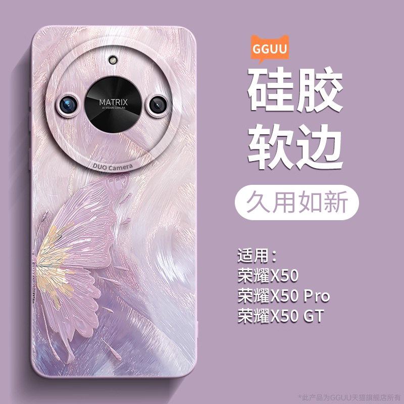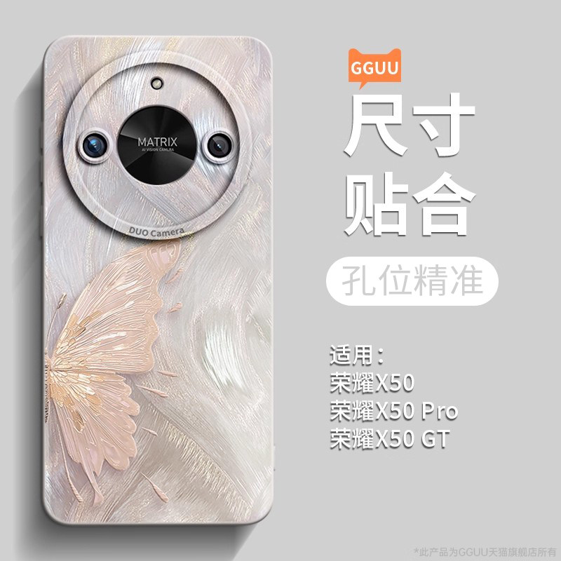 📚 鎏金蝴蝶适用荣耀x50手机壳x50pro套x70新款x60pro的x50gt华为防摔女x40液态x60硅胶高级感honor专用曲面屏薄