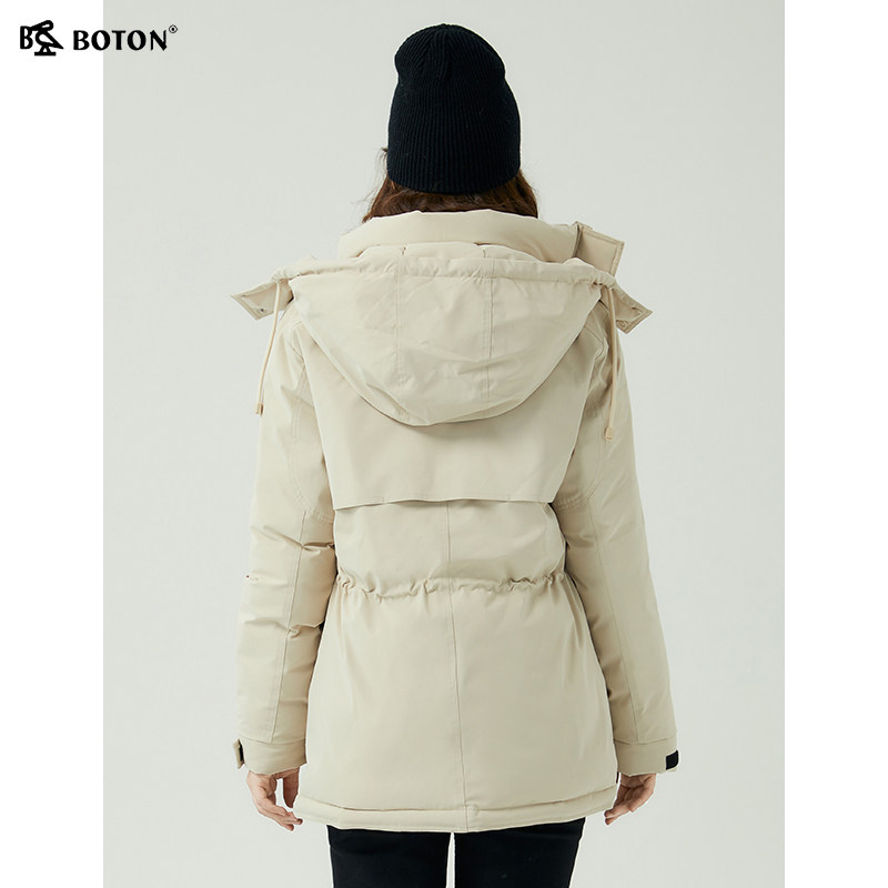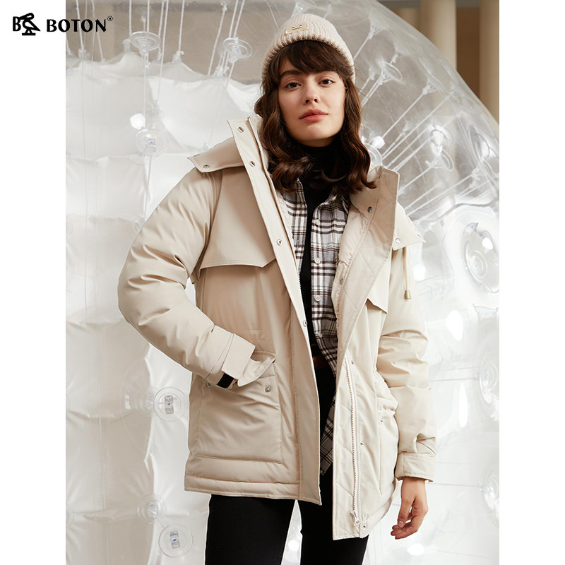 📚 波顿2025秋冬季新女士中长款白鸭绒高端羽绒服派克工装风连帽上衣
