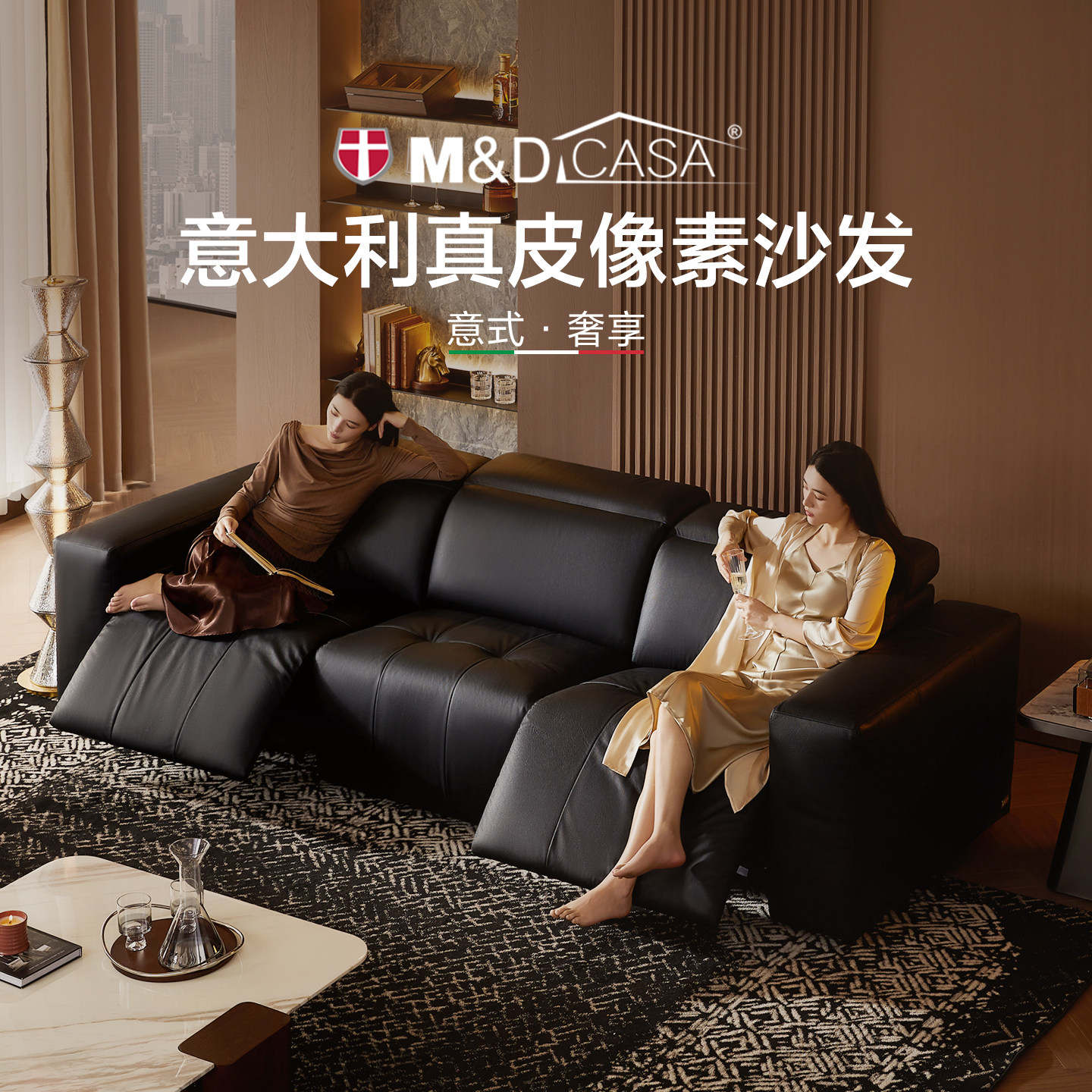 📚 M&DCASA半青皮沙发客厅中古风意式轻奢0靠墙真皮电动像素md沙发