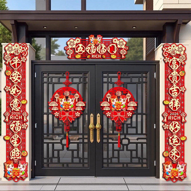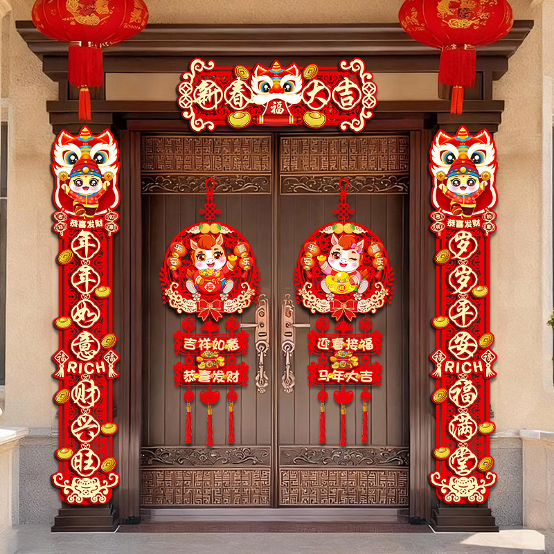 📚 春联对联2026年新款福星高照马年磁吸绒布门贴套装大礼包春节布置