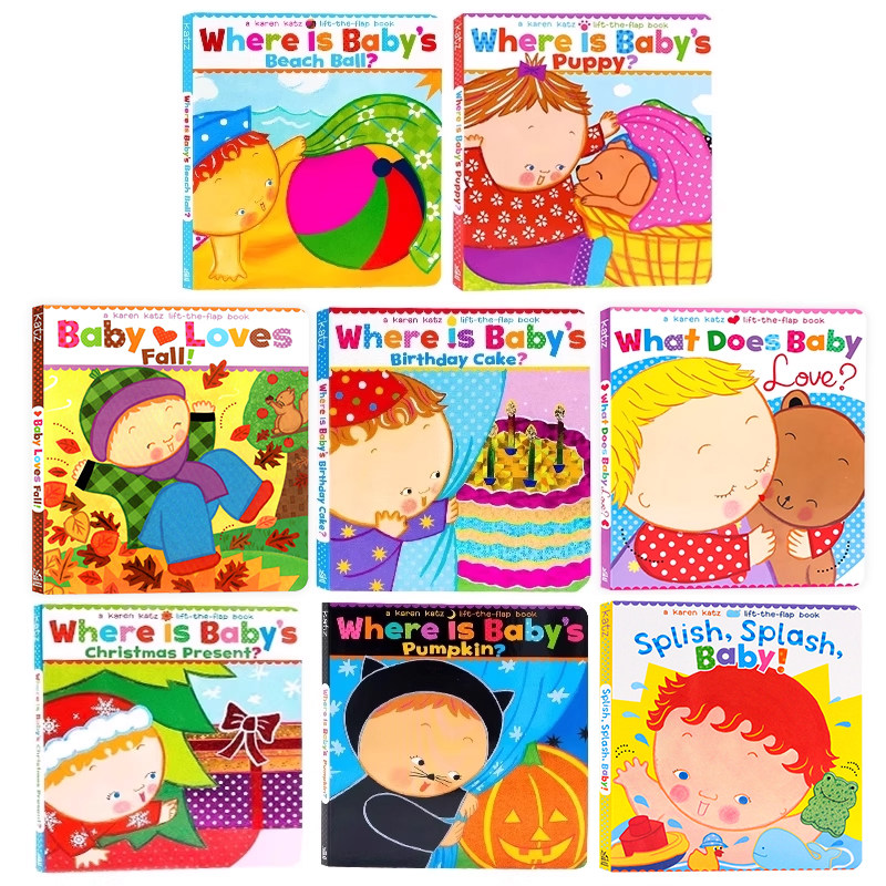 📚 Karen Katz翻翻书8册 英文原版绘本 卡凯伦卡茨 Where is baby's Belly Button宝宝的肚脐眼在哪里儿童早教英语启蒙认知图画纸板书