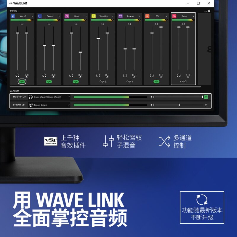 📚 Elgato WAVE:3 USB电容麦克风话筒游戏直播莱维特技术集成声卡
