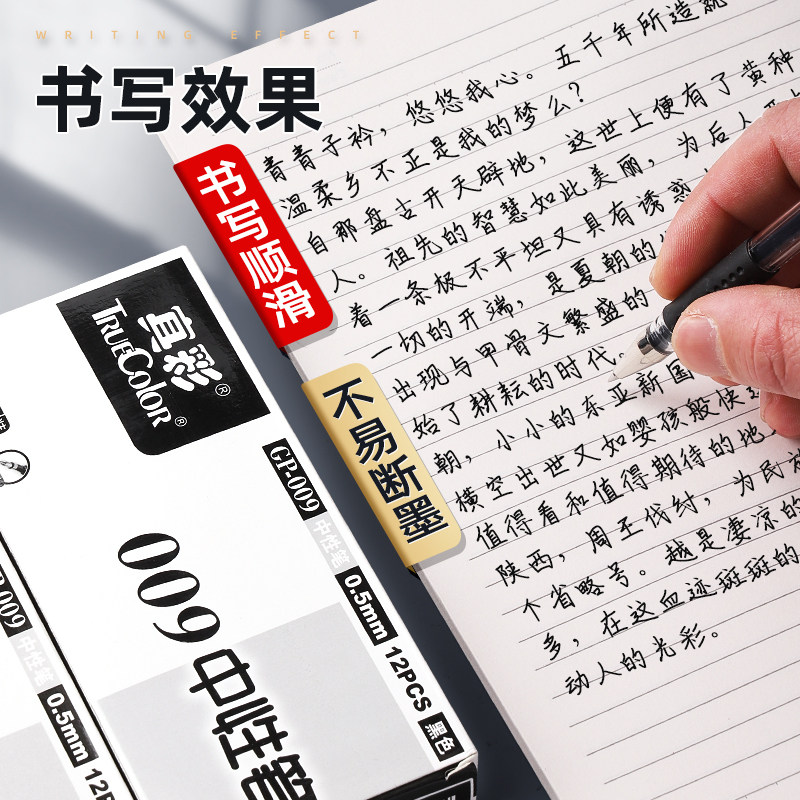 📚 真彩文具009中性笔黑色笔0.5mm子弹头办公签字笔改试卷红笔考试刷题笔学生专用水笔经典黑笔蓝笔笔芯碳素笔