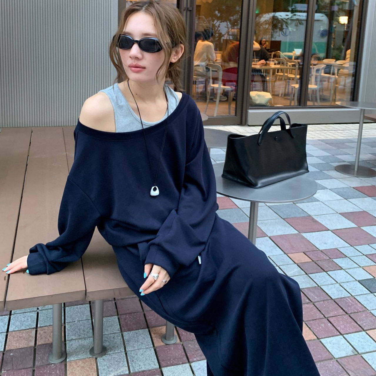 📚 THE MIND 秋季小众设计感露肩背心卫衣半身裙三件套装配项链5351