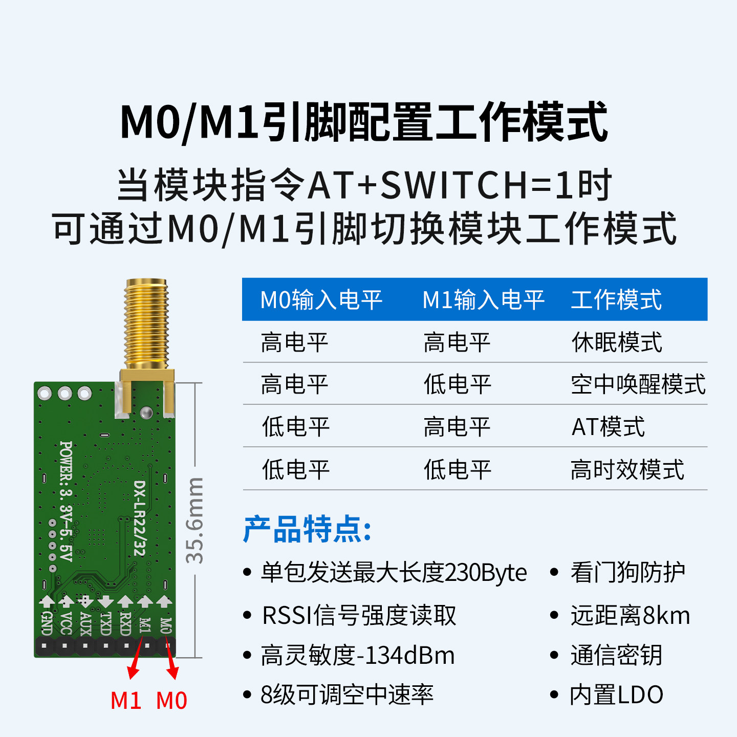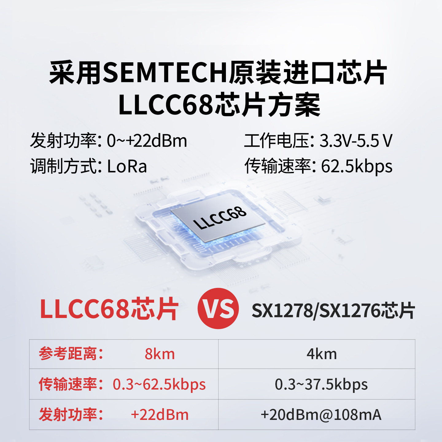 📚 大夏龙雀LoRa模块无线收发LLCC68串口通信8km传输发射频接收LR22