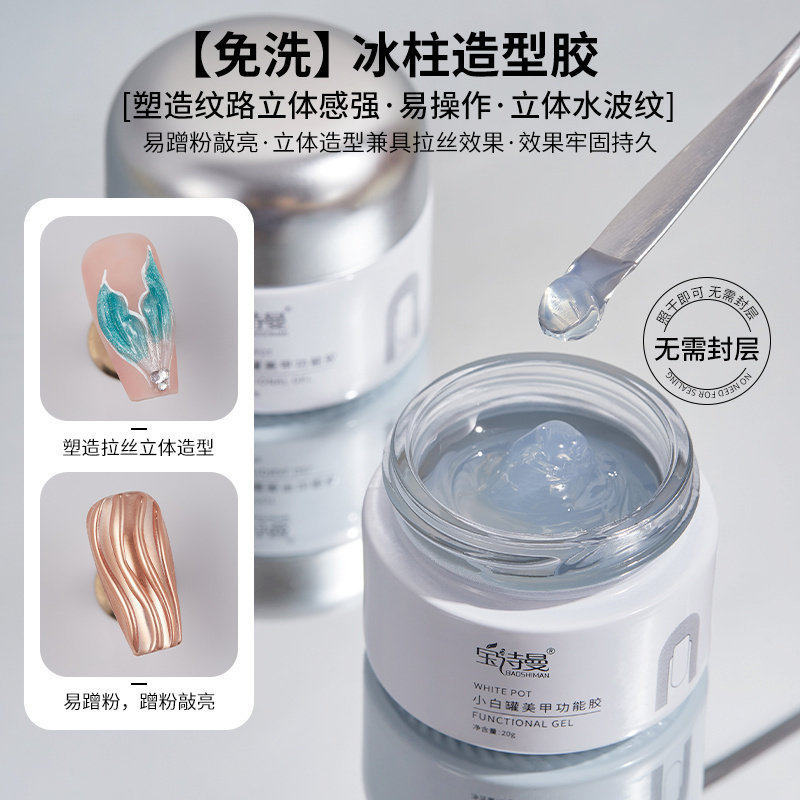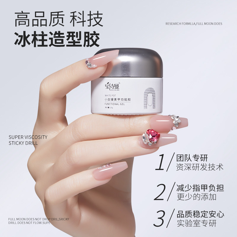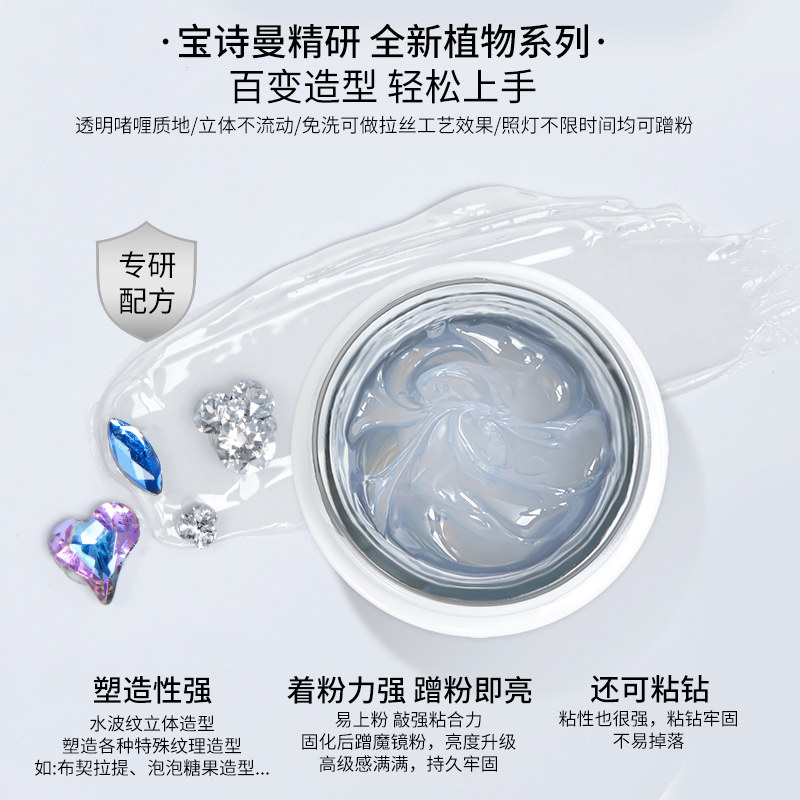 📚 宝诗曼新款免洗冰柱胶美甲罐装功能胶甲油胶粘钻胶微雕蹭粉造型胶