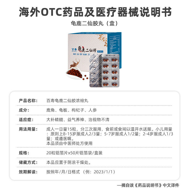 📚 科达制药百寿龟鹿二仙胶膏丸汤同仁堂中成药无糖1000丸/盒实惠装