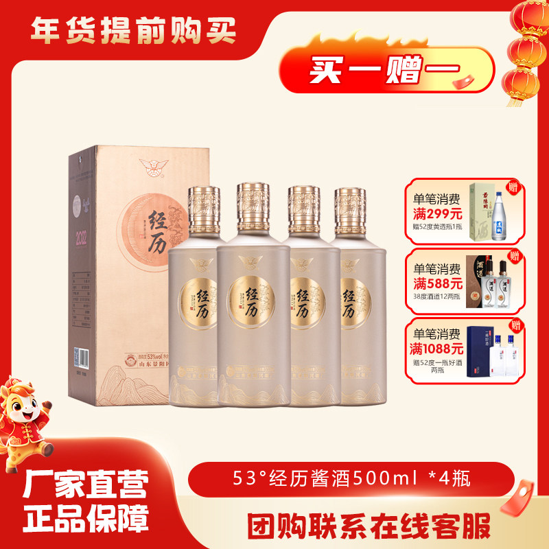 📚 景阳冈53度经历2022酱香型粮食白酒500ml*4瓶整箱装礼盒商务宴请