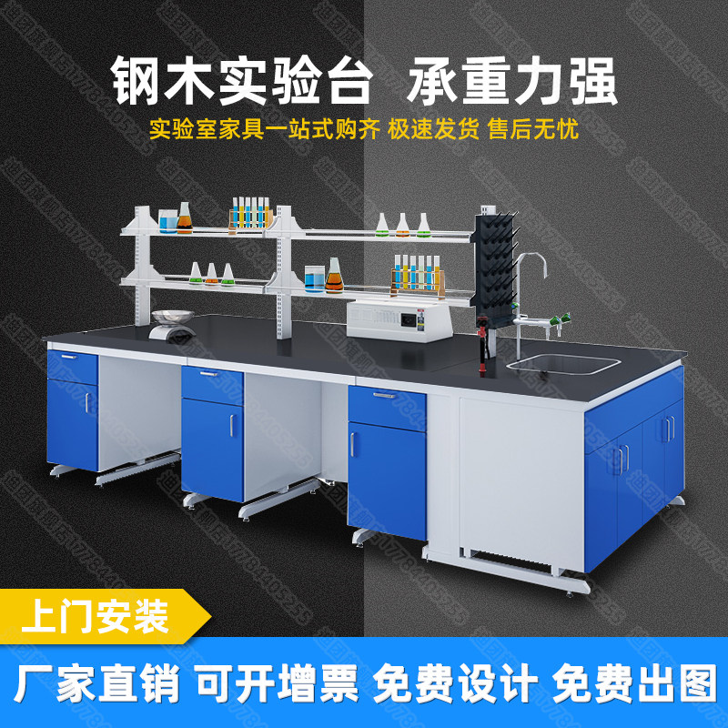 📚 实验室工作台钢木实验台桌子化验操作边台全钢中央台通风