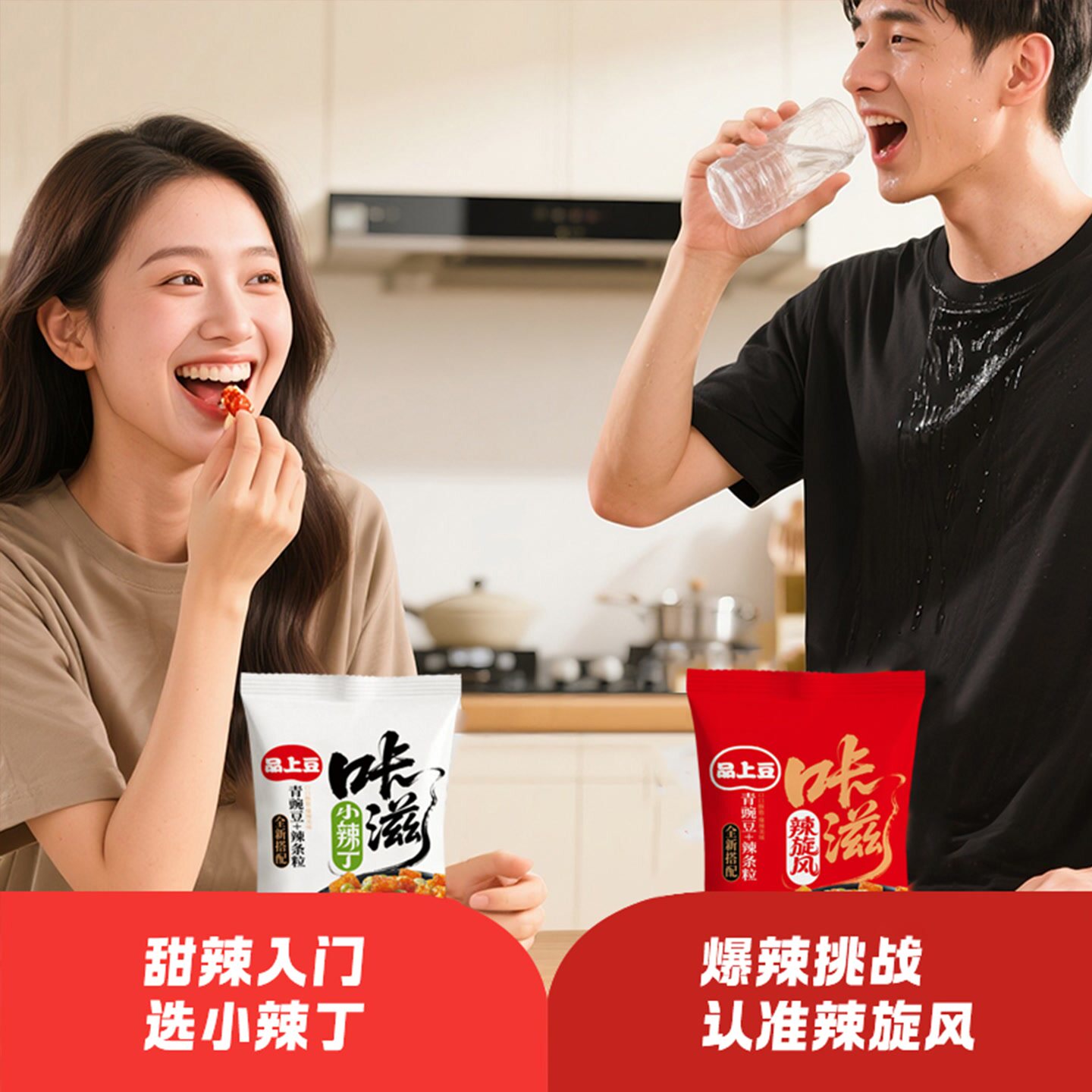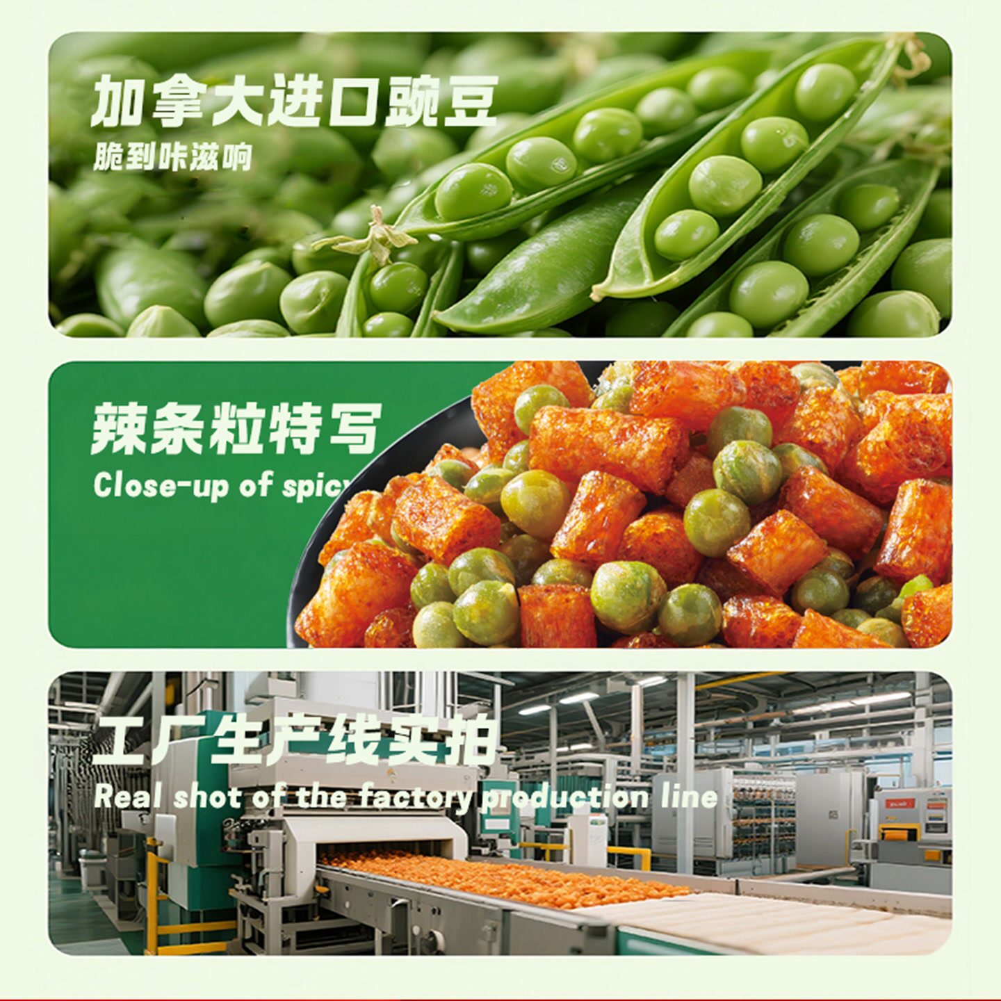 📚 品上豆【到手15袋】酥脆小辣丁油炸/辣旋风青豌豆辣条粒爆辣零食