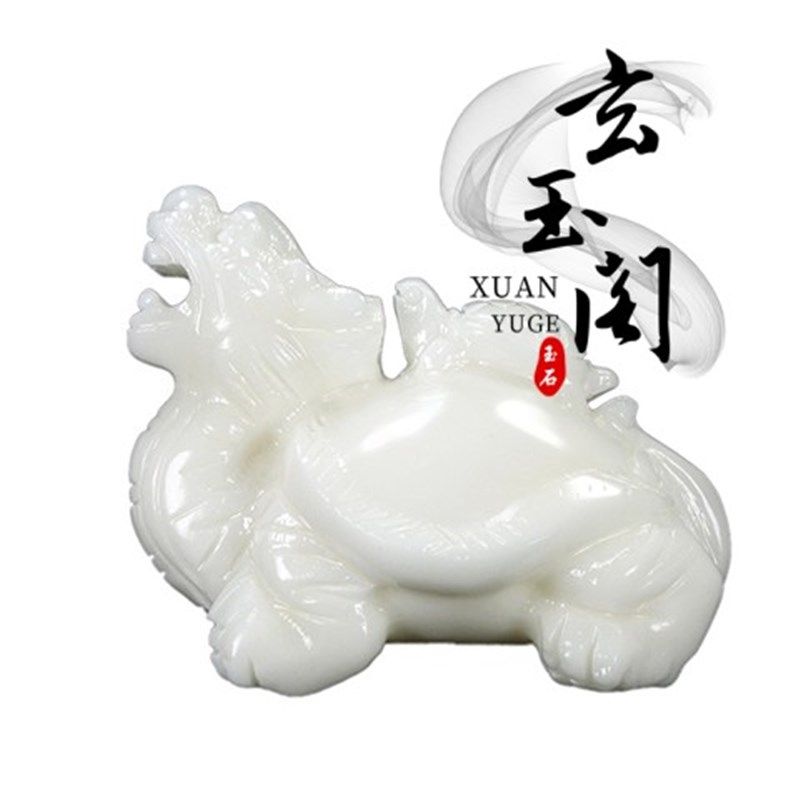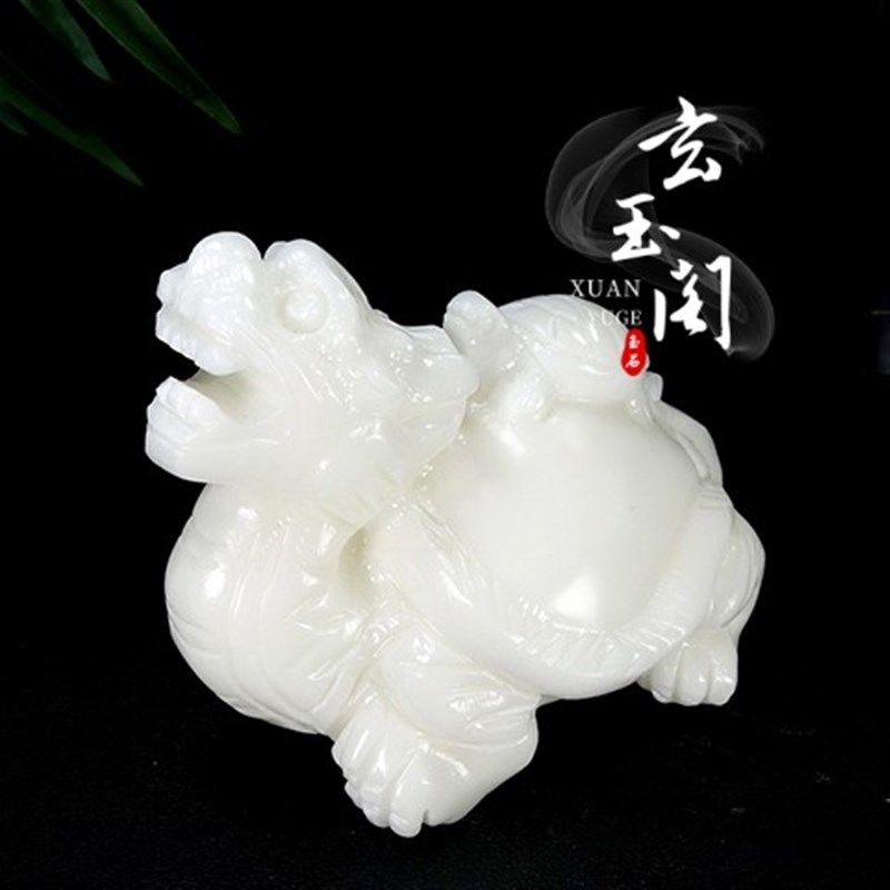 📚 天然白玉石龙龟摆件米黄玉母子龙龟客厅家居办公室玄关装饰品摆件