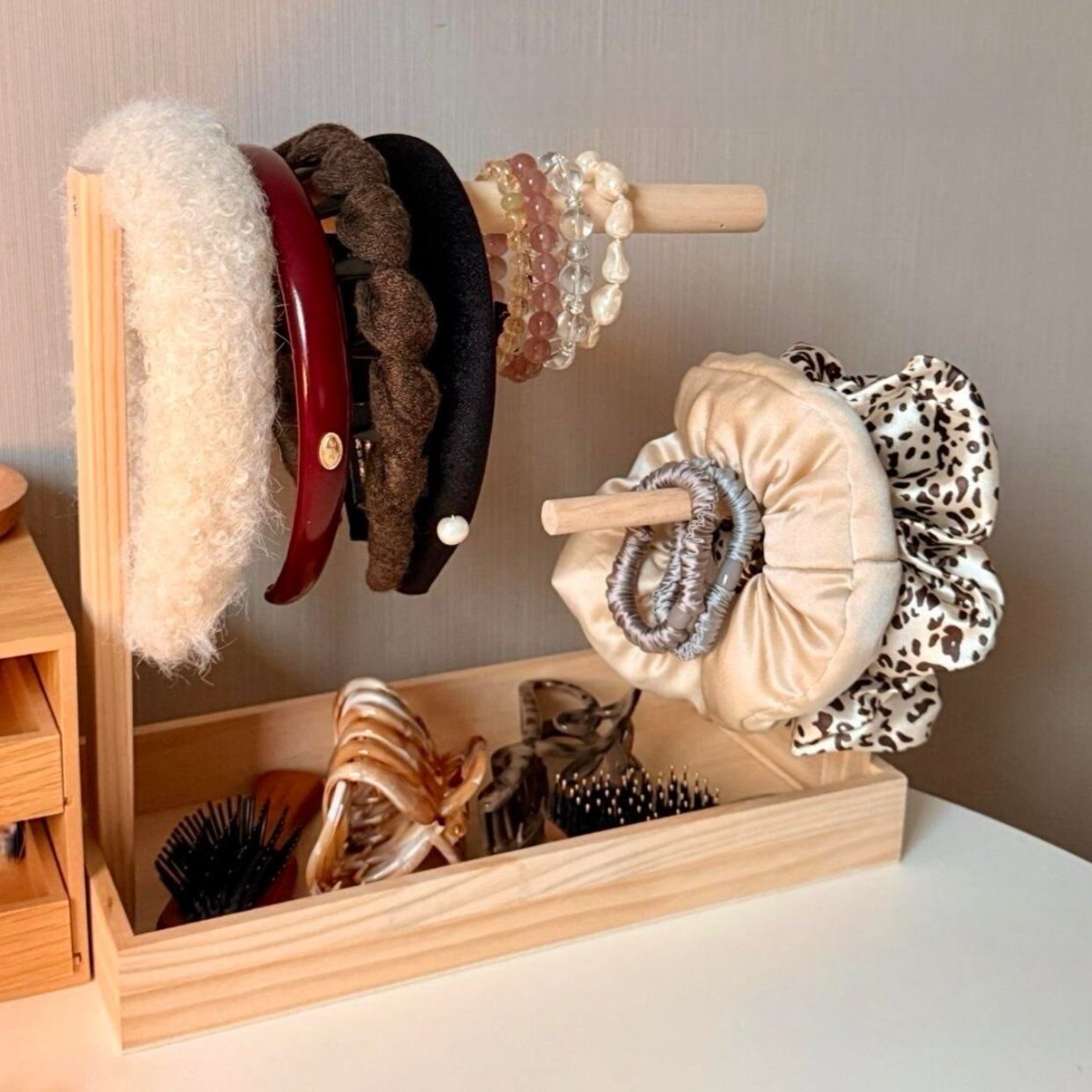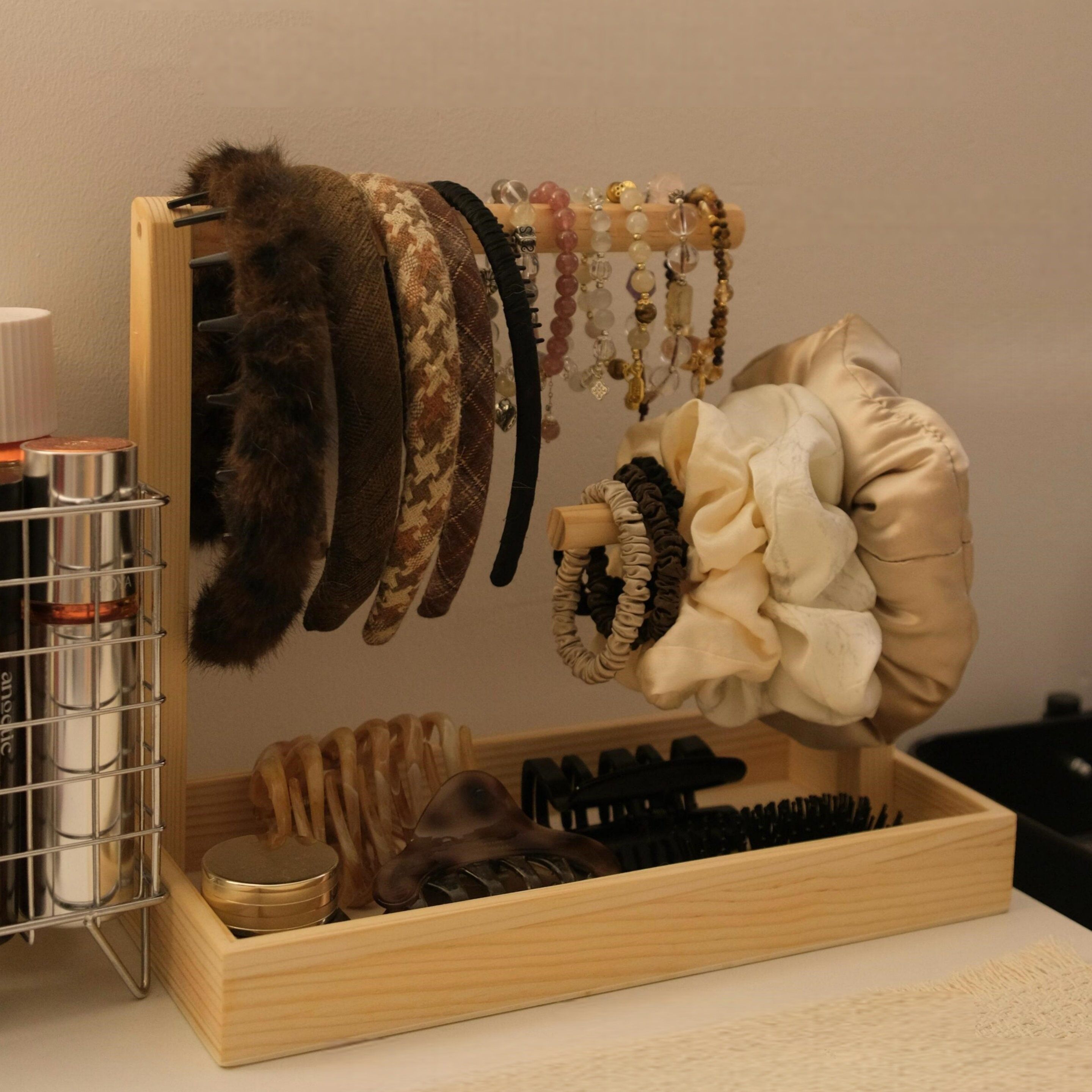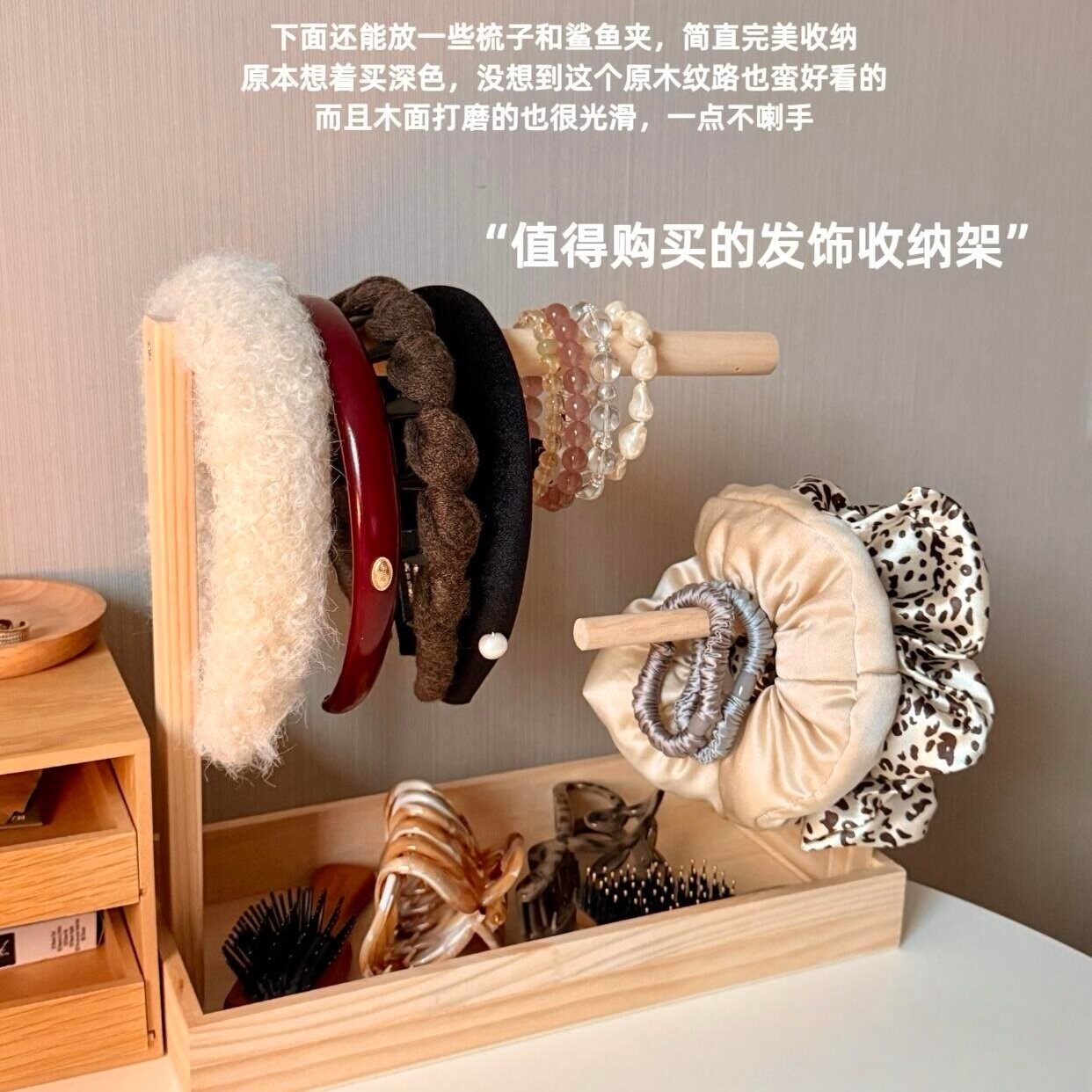 📚 发箍发圈收纳神器鲨鱼夹抓夹头箍发箍桌面收纳架实木发饰架收纳盒
